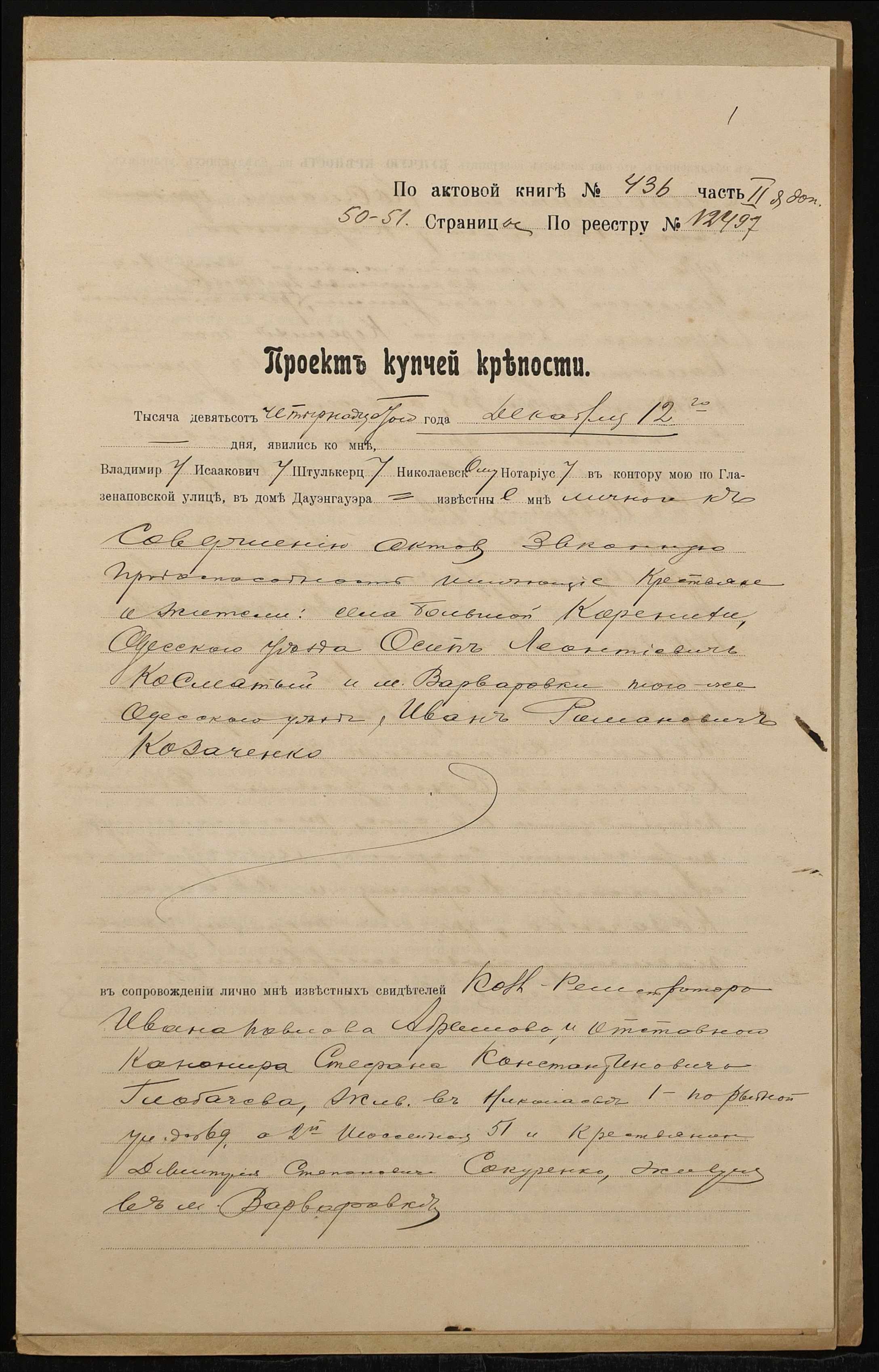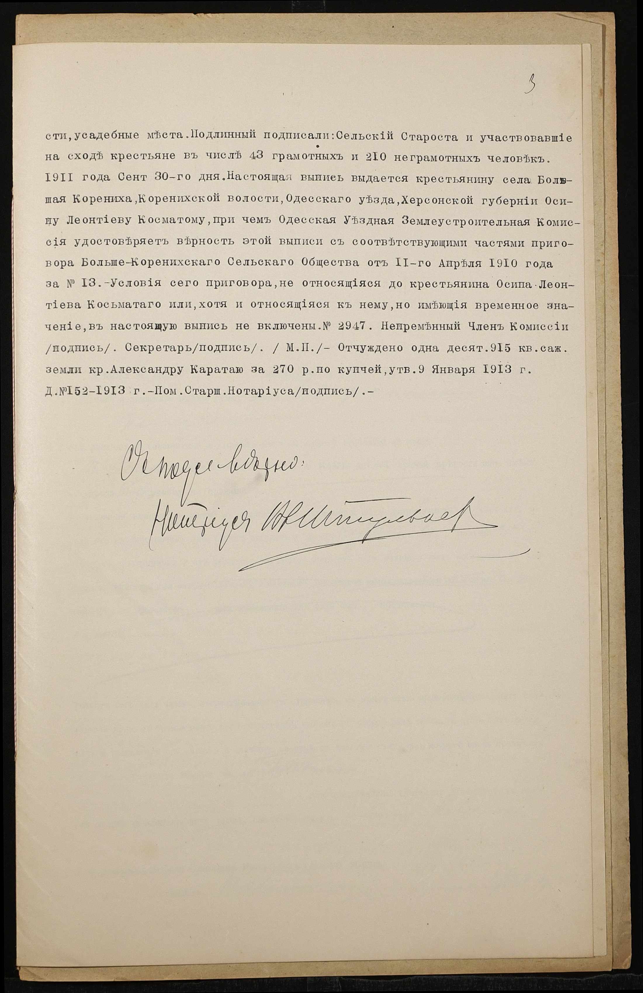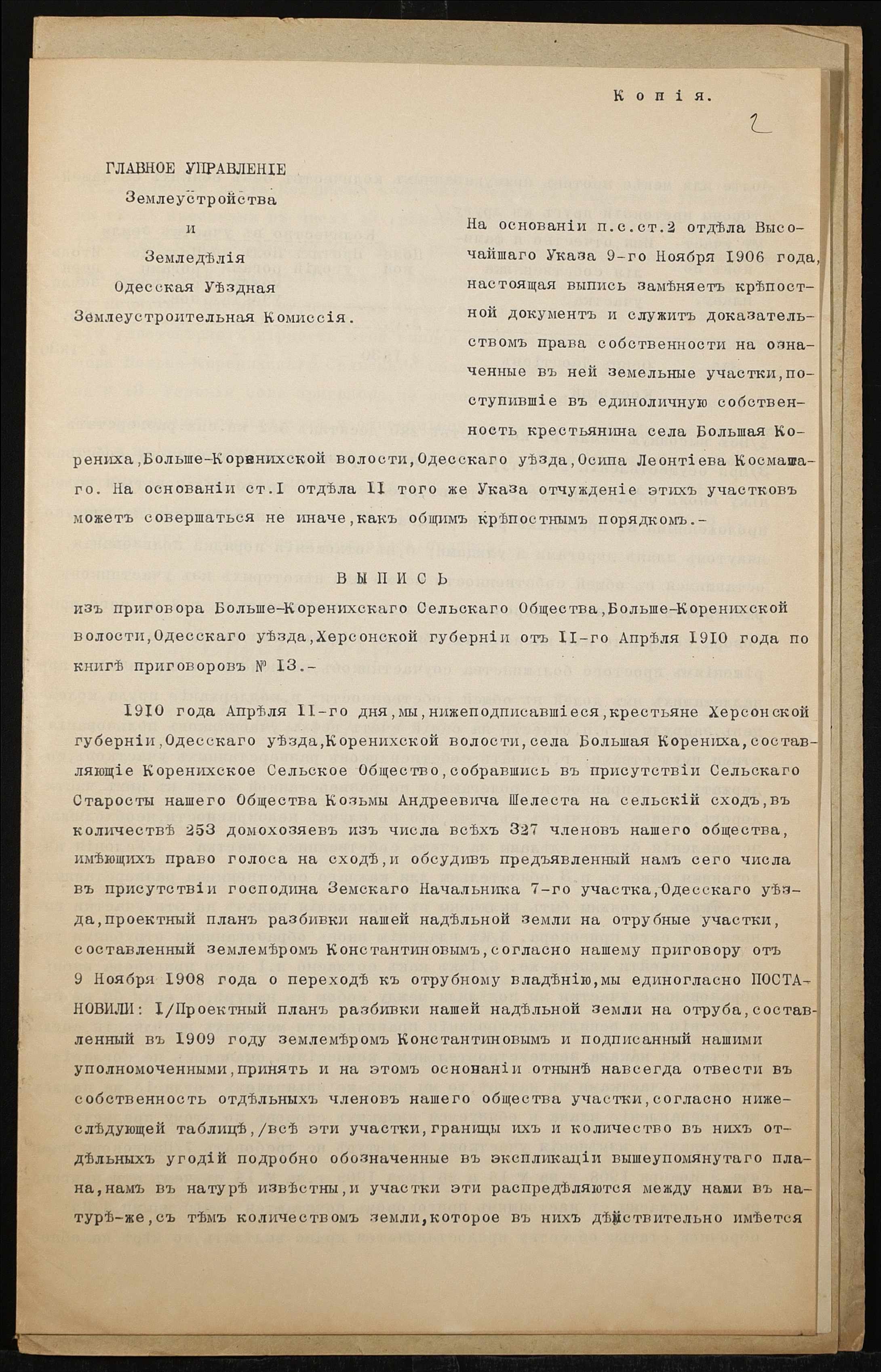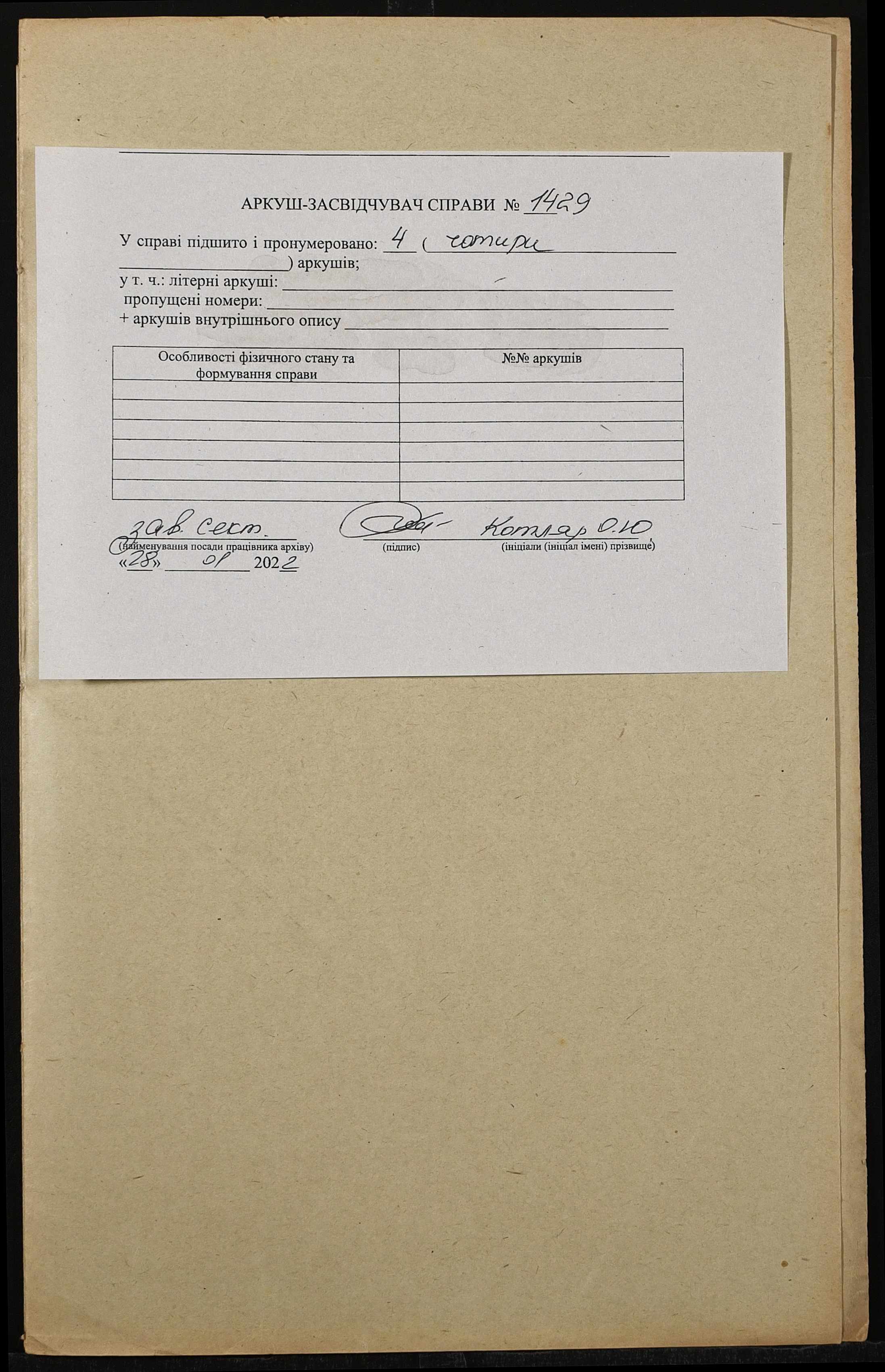 • • • • Справа № 1429 “Справа про вчинення купчої про продаж землі селянином Косматим Осипом Леонтійовичем (Косматым Осипом Леонтьевичем) на користь селянина Козаченка Івана Романовича (Козаченко Ивана Романовича)”