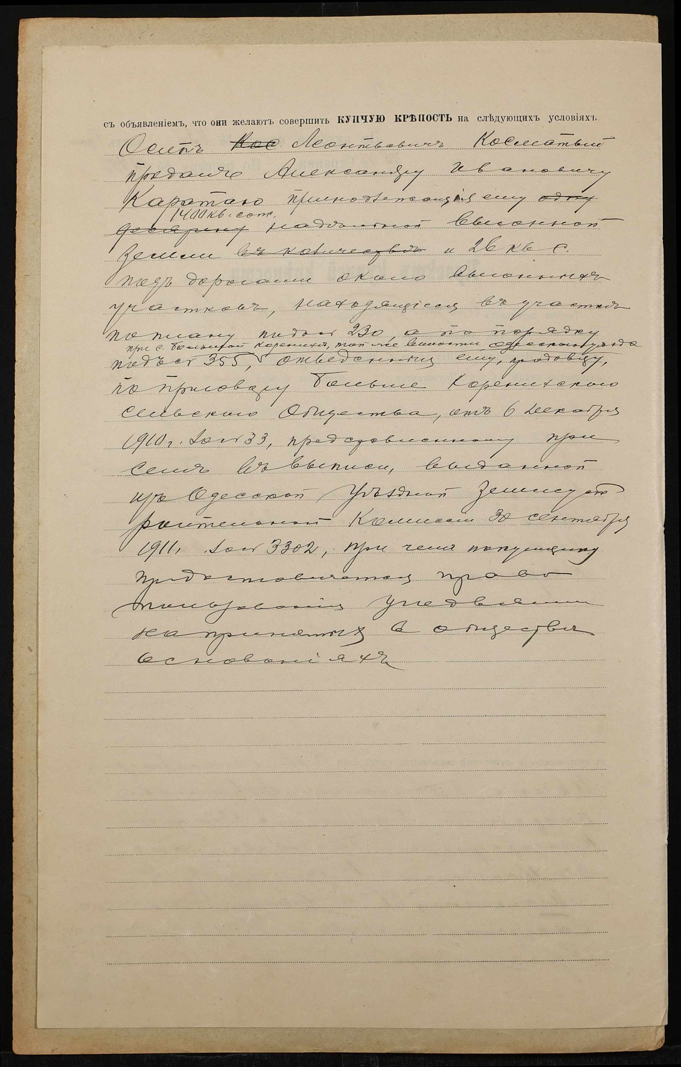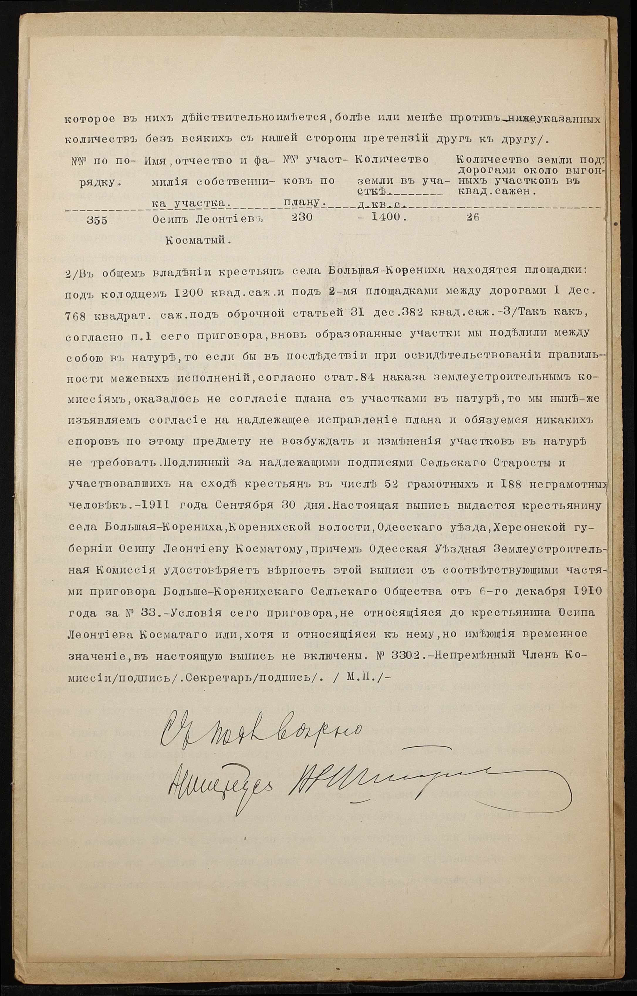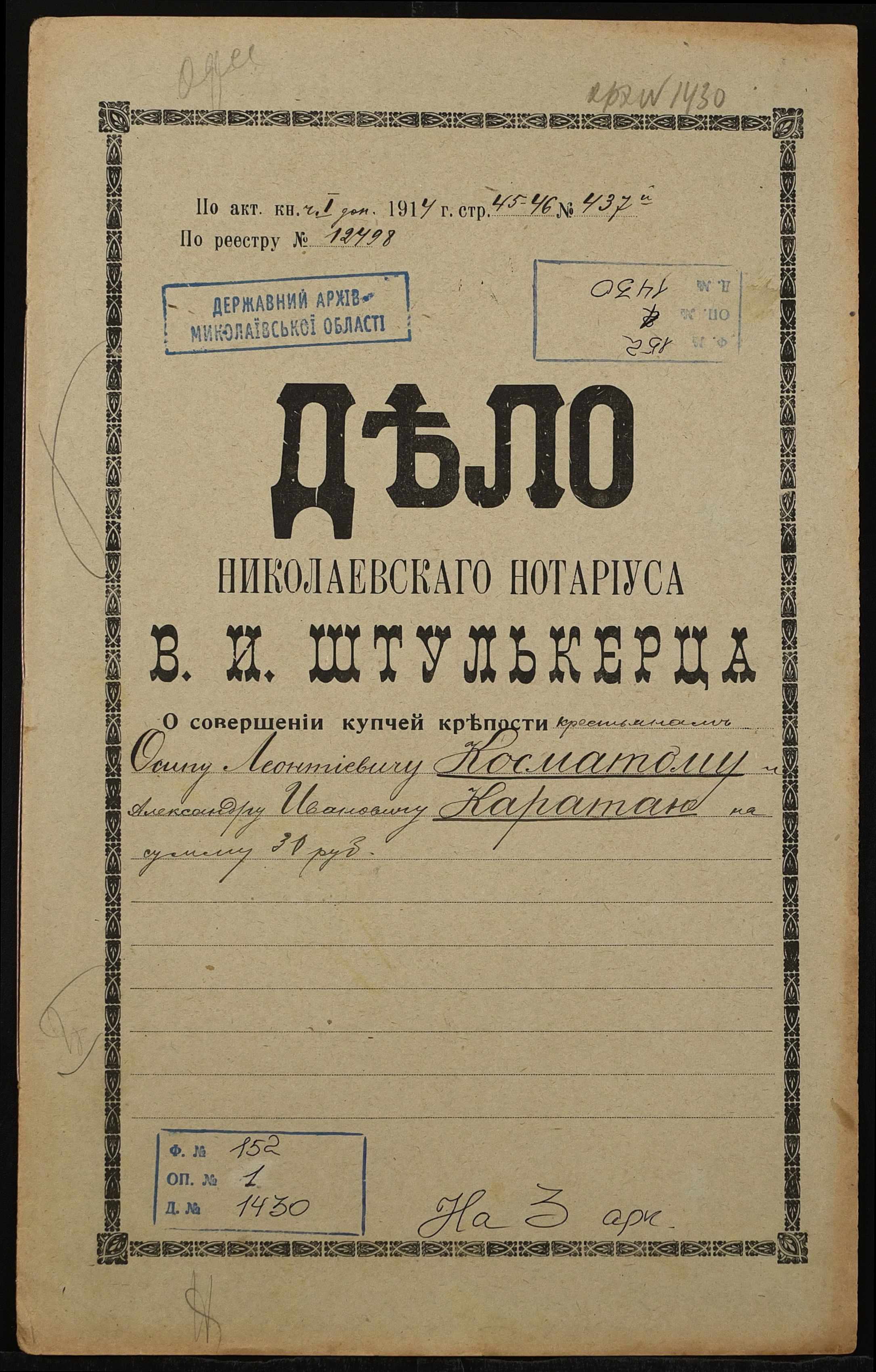 • • • • Справа № 1430 “Справа про вчинення купчої про продаж землі селянином Косматим Осипом Леонтійовичем (Косматым Осипом Леонтьевичем) на користь селянина Каратая Олександра Івановича (Каратая Александра Ивановича)”
