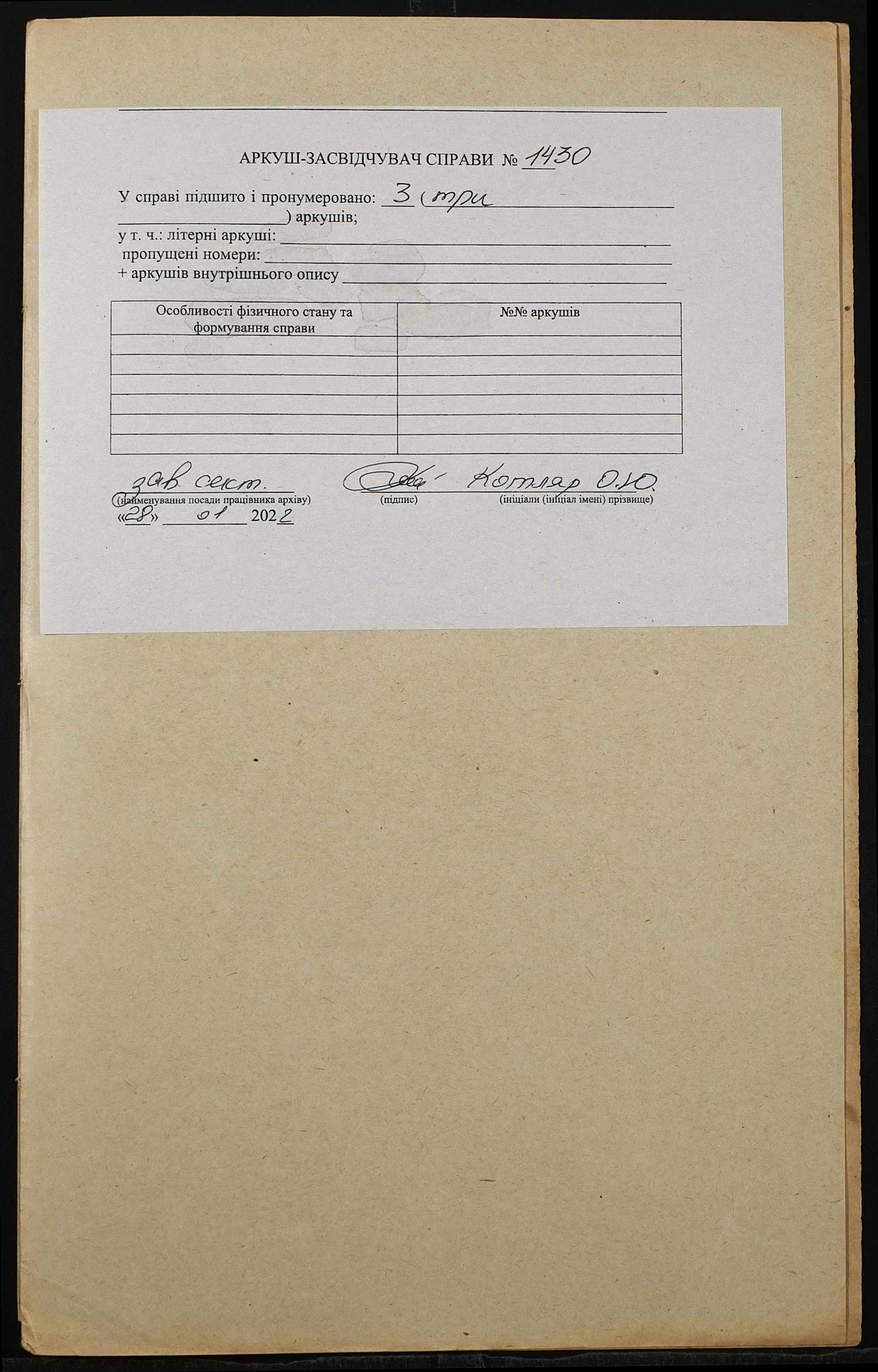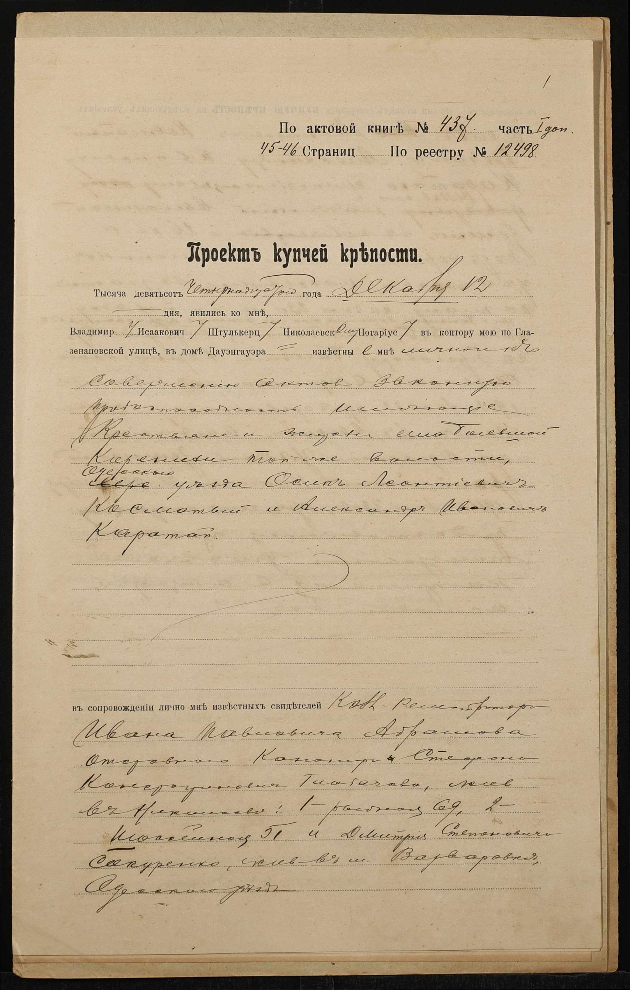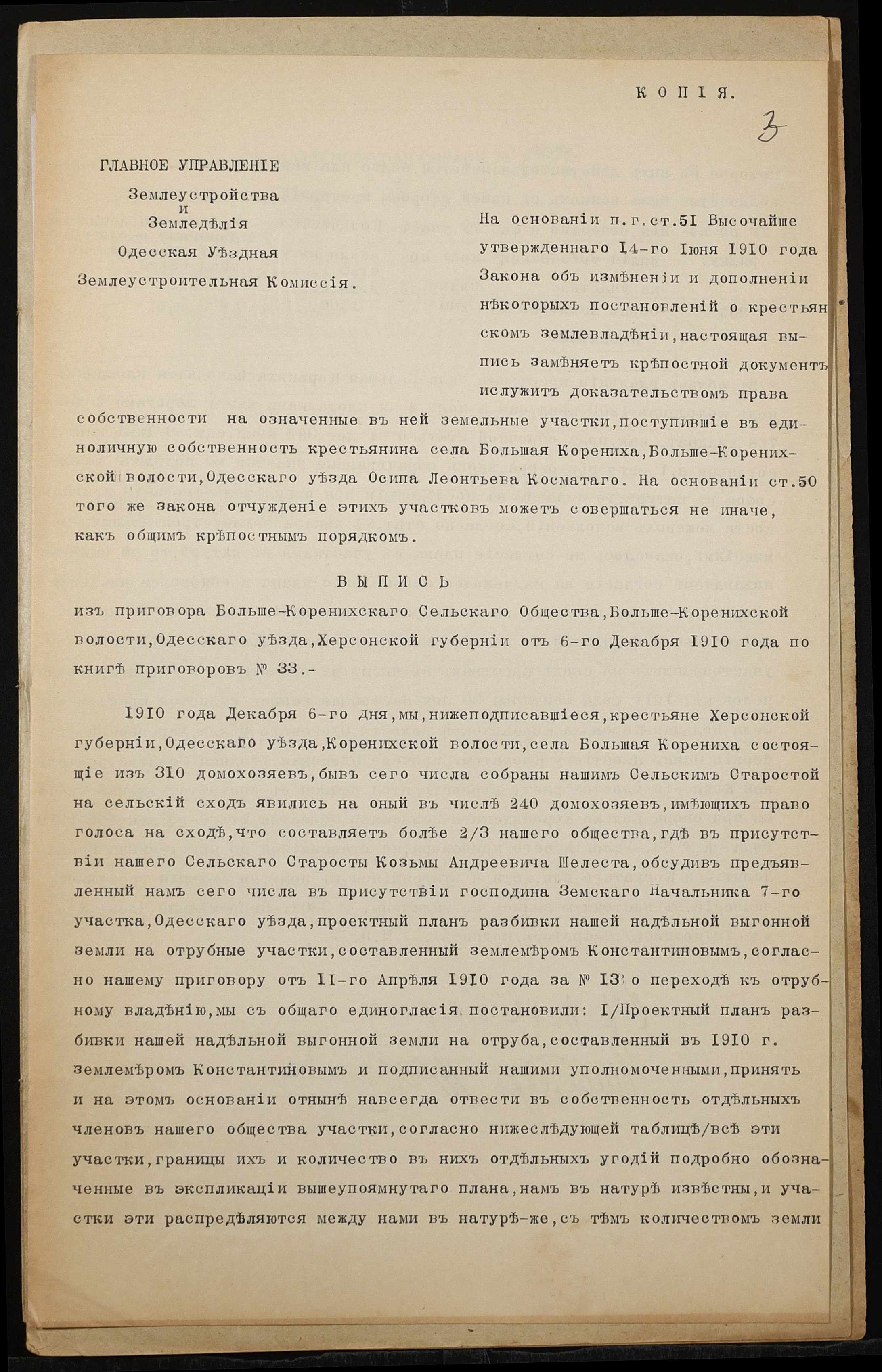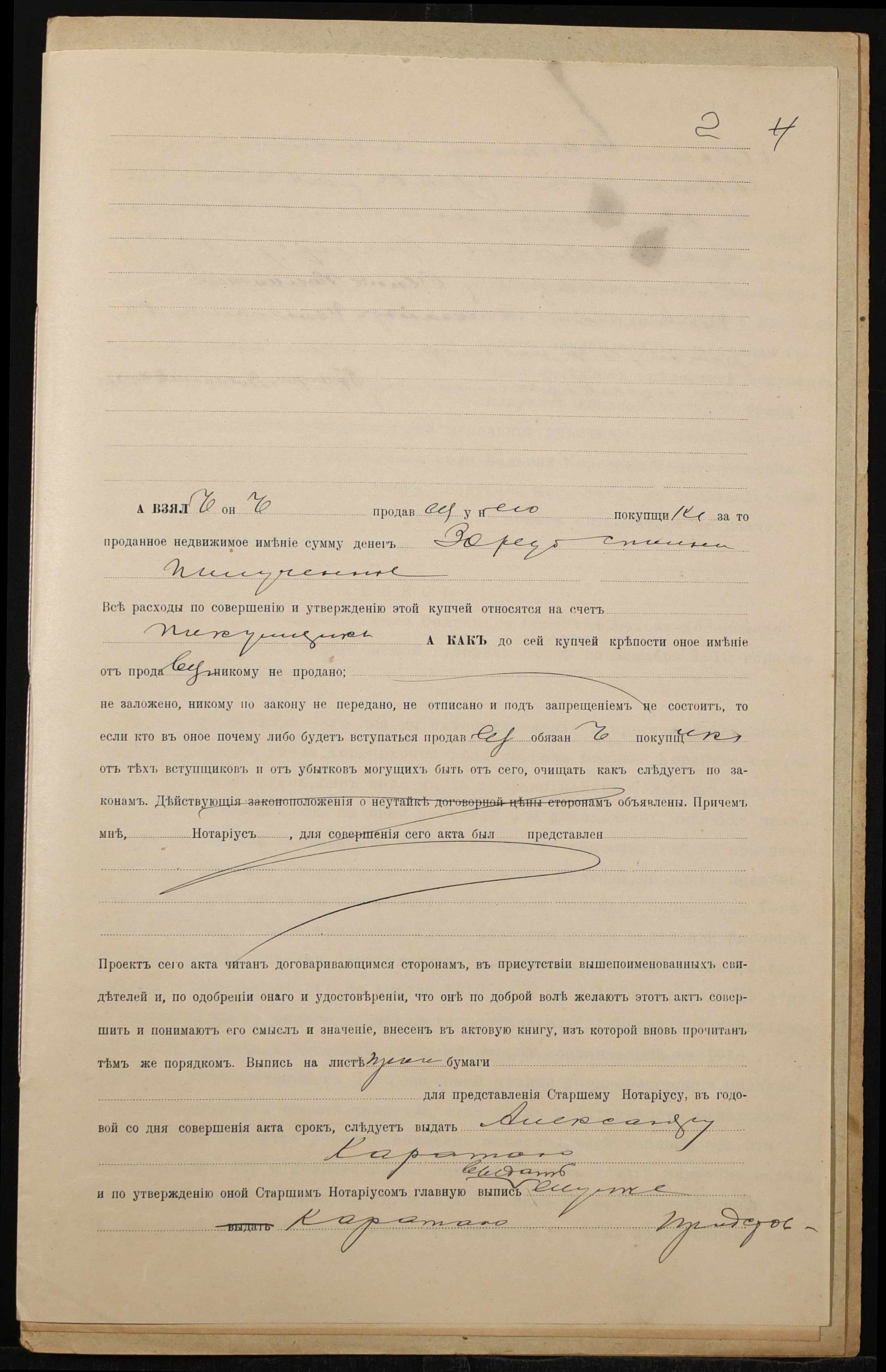 • • • • Справа № 1430 “Справа про вчинення купчої про продаж землі селянином Косматим Осипом Леонтійовичем (Косматым Осипом Леонтьевичем) на користь селянина Каратая Олександра Івановича (Каратая Александра Ивановича)”
