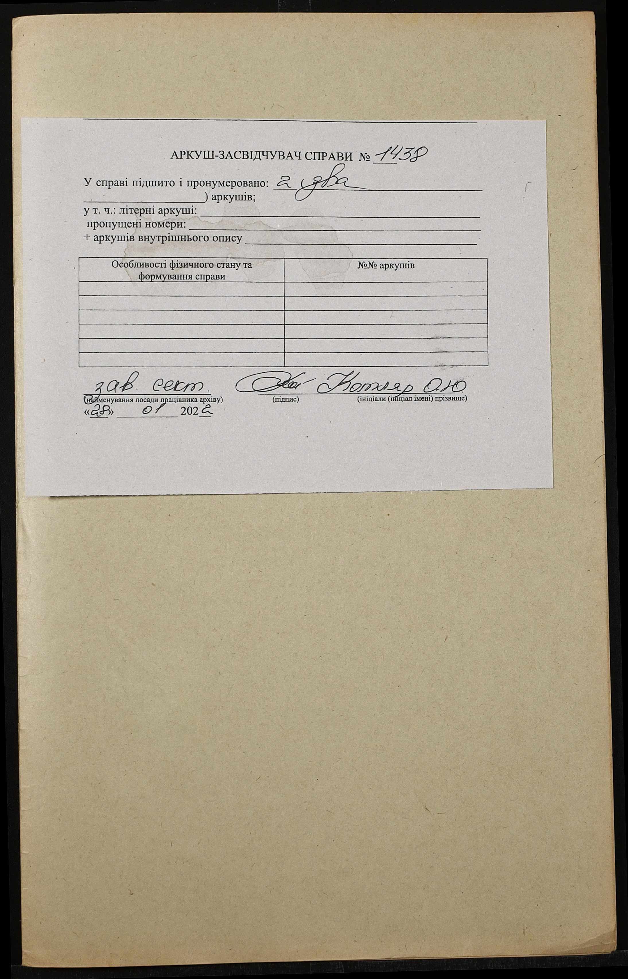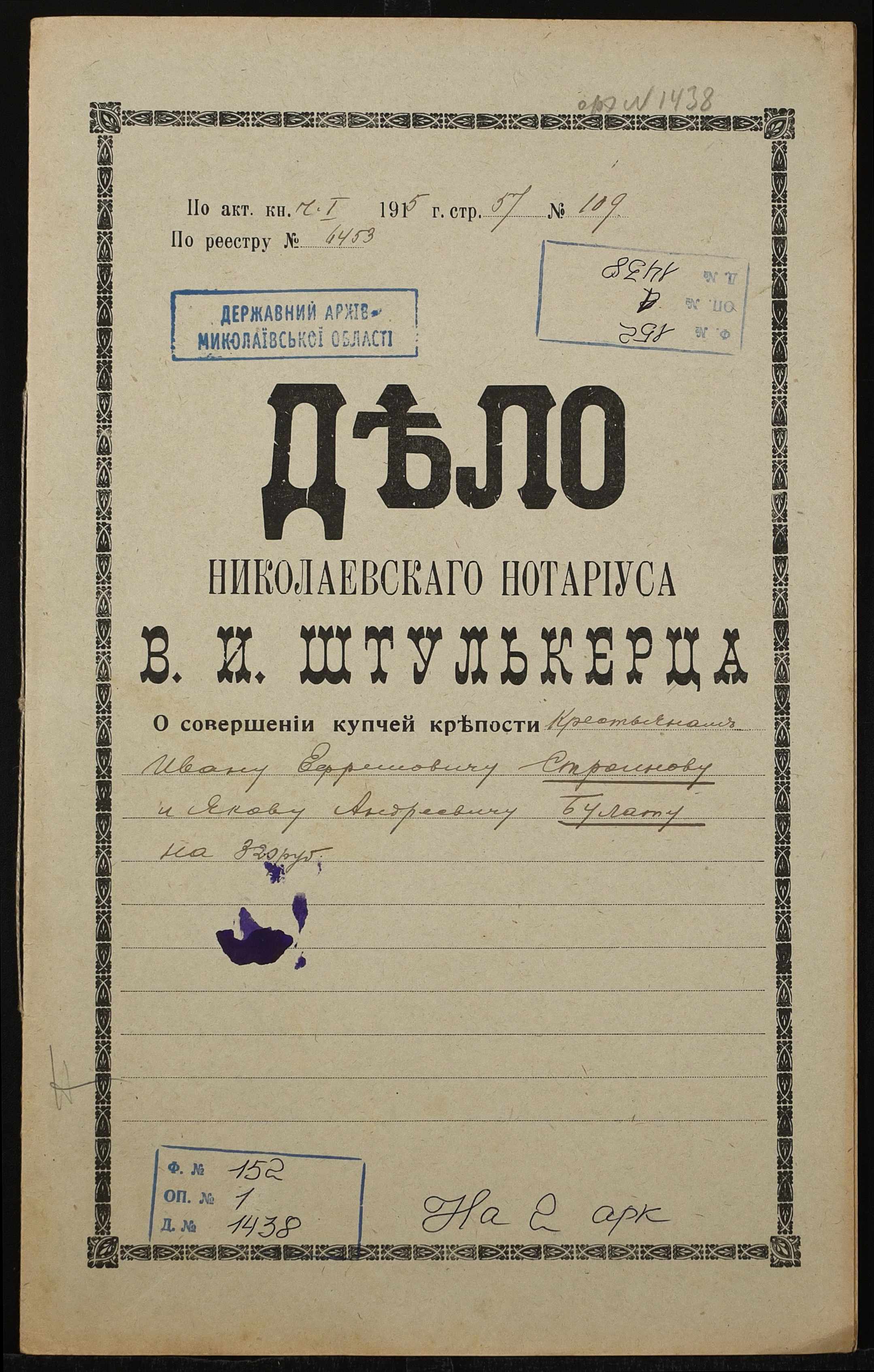 Фонд 152 / Опис 1 / Справа 1438