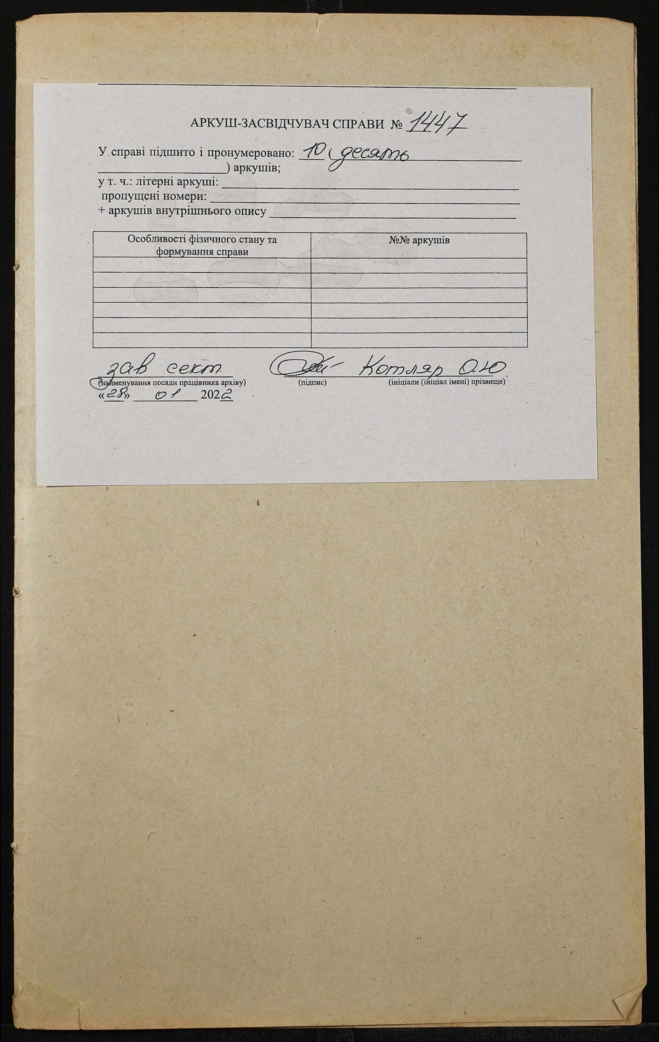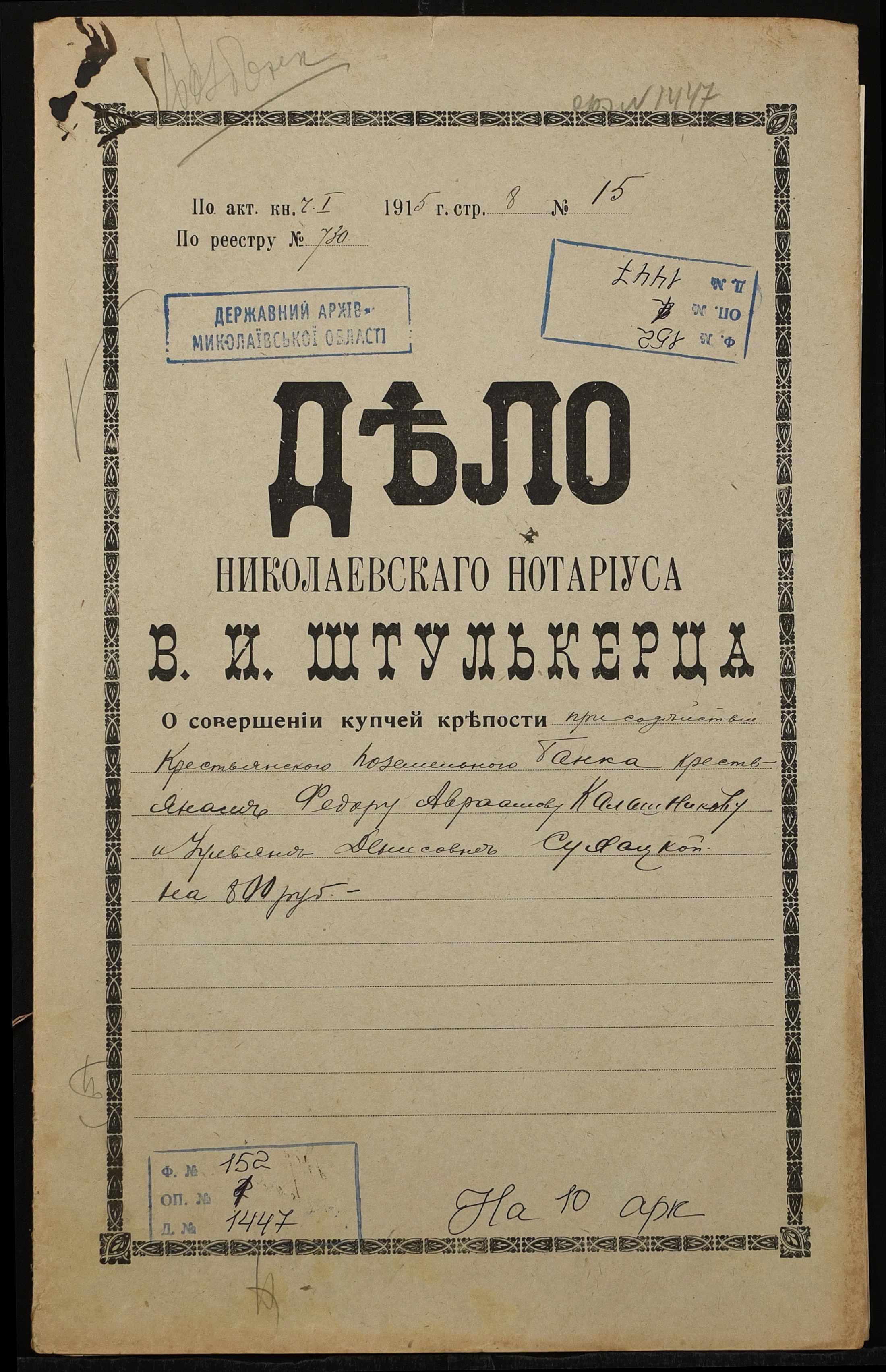 Фонд 152 / Опис 1 / Справа 1447