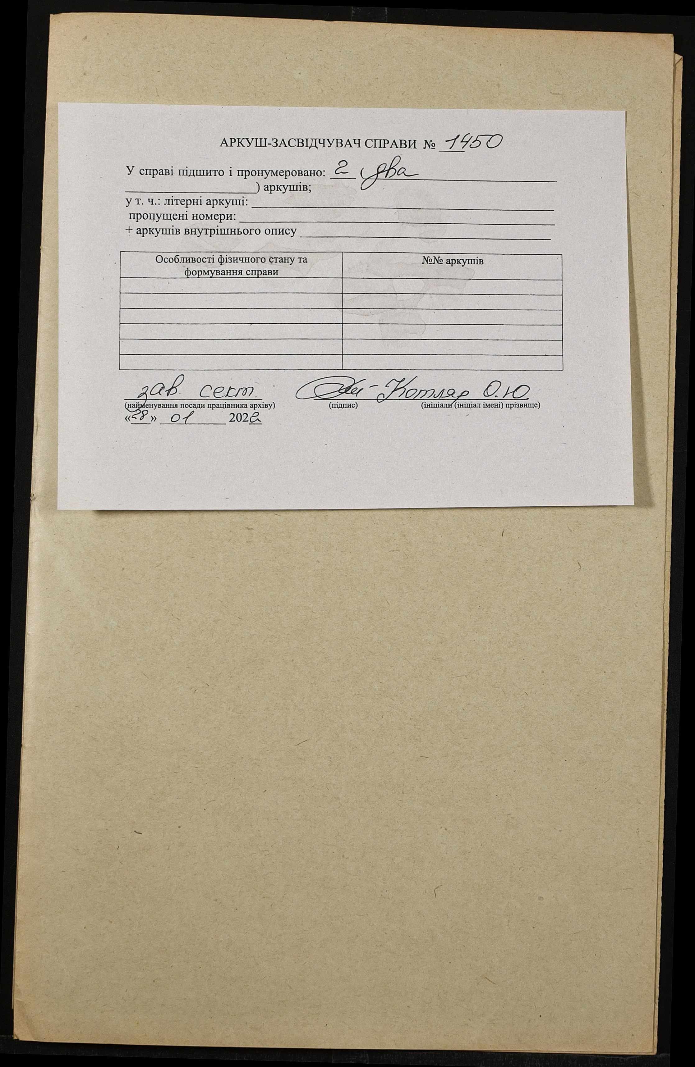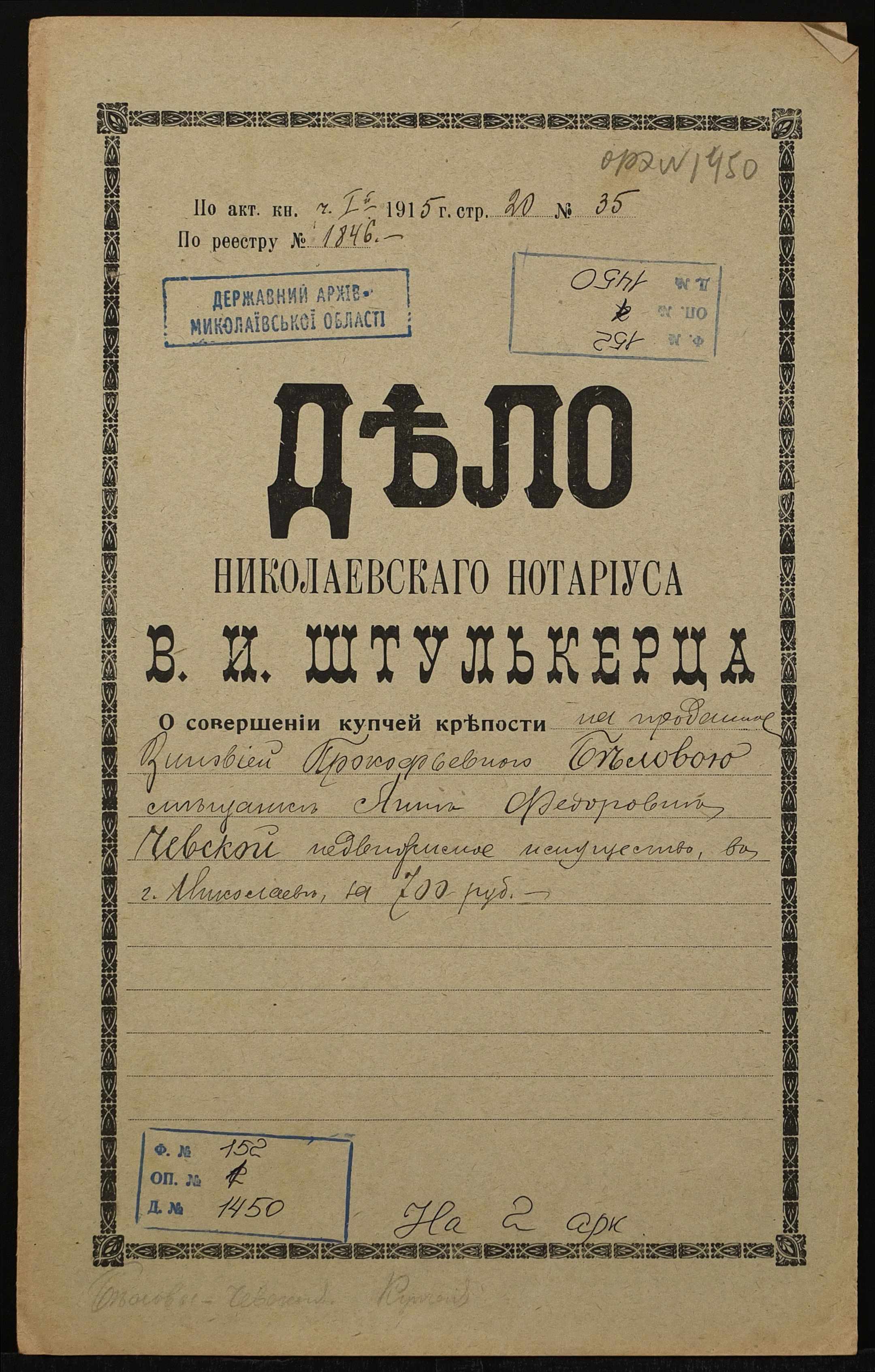 Фонд 152 / Опис 1 / Справа 1450