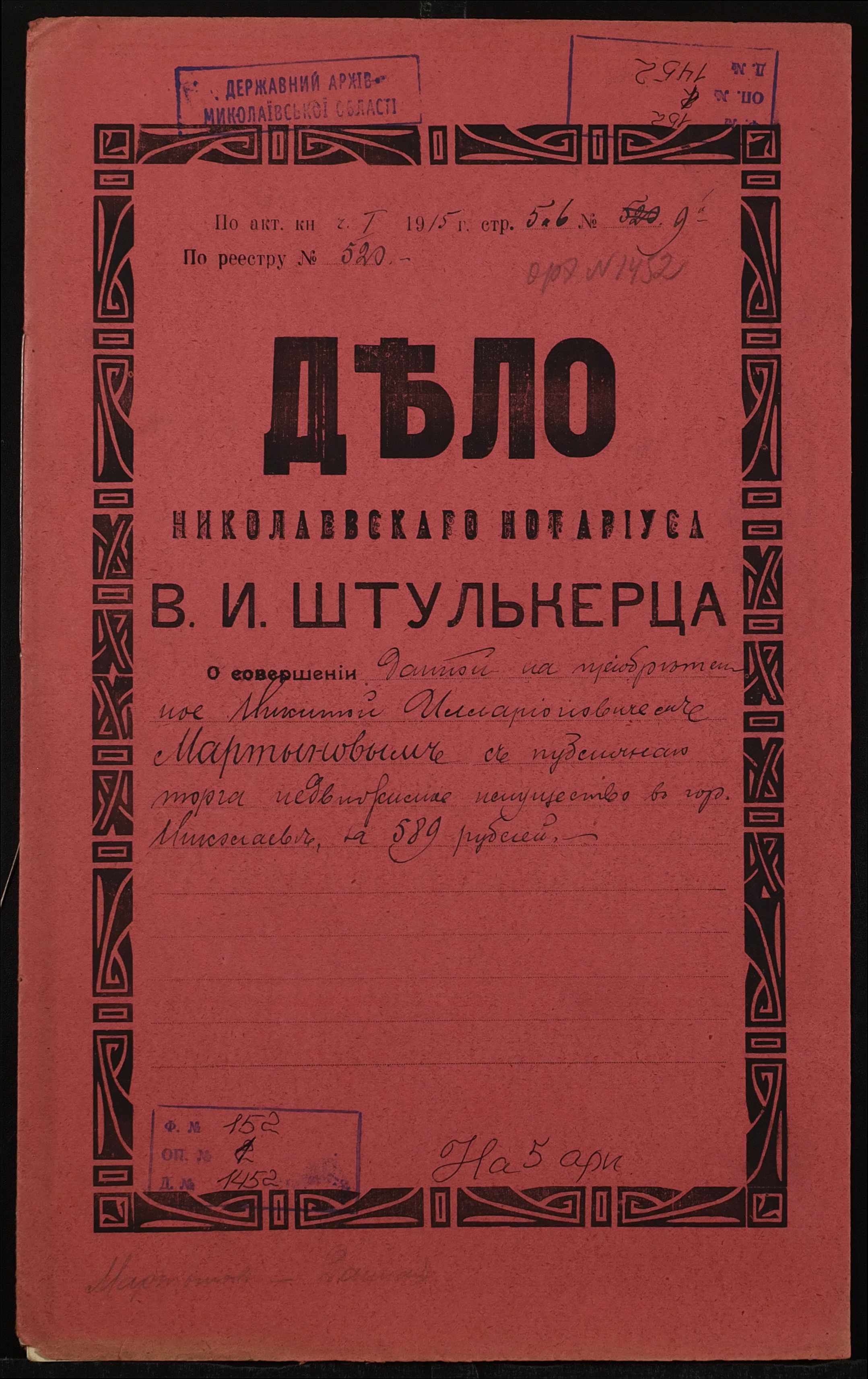 Фонд 152 / Опис 1 / Справа 1452