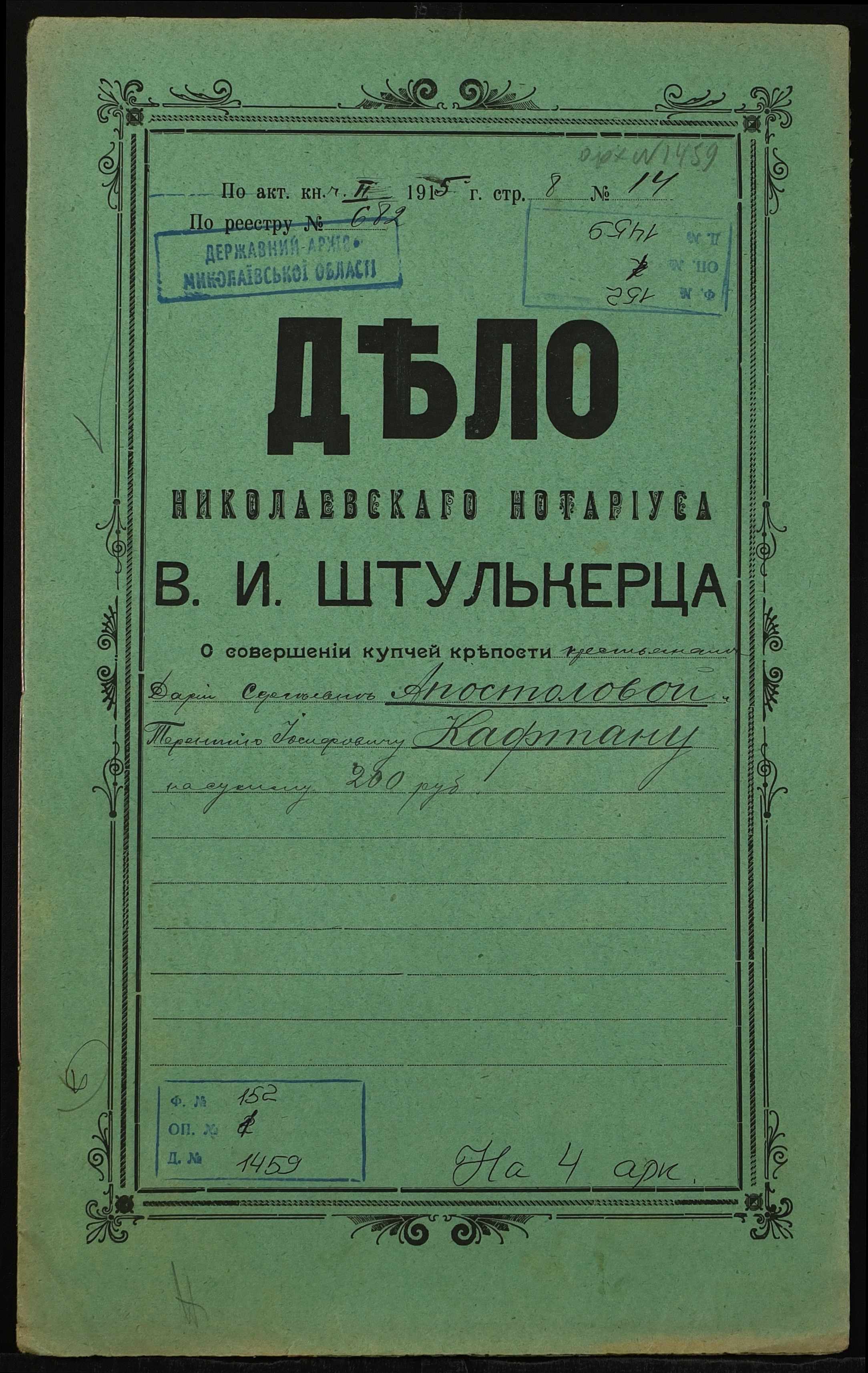 Фонд 152 / Опис 1 / Справа 1459