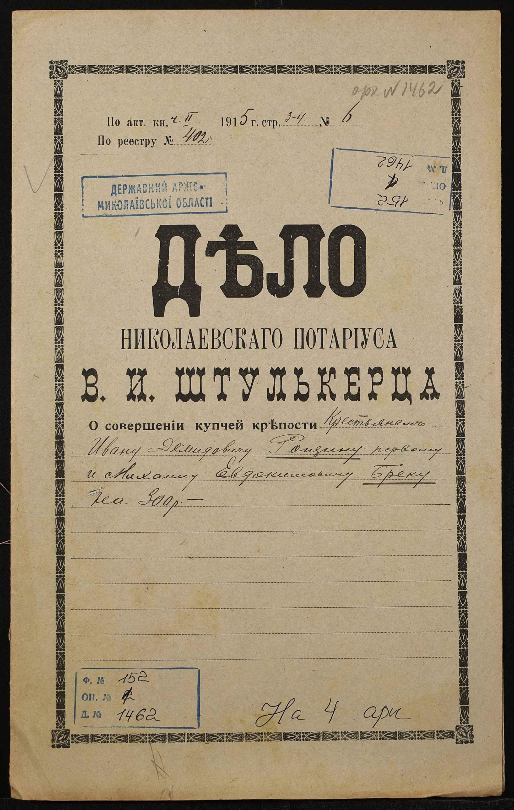 Фонд 152 / Опис 1 / Справа 1462