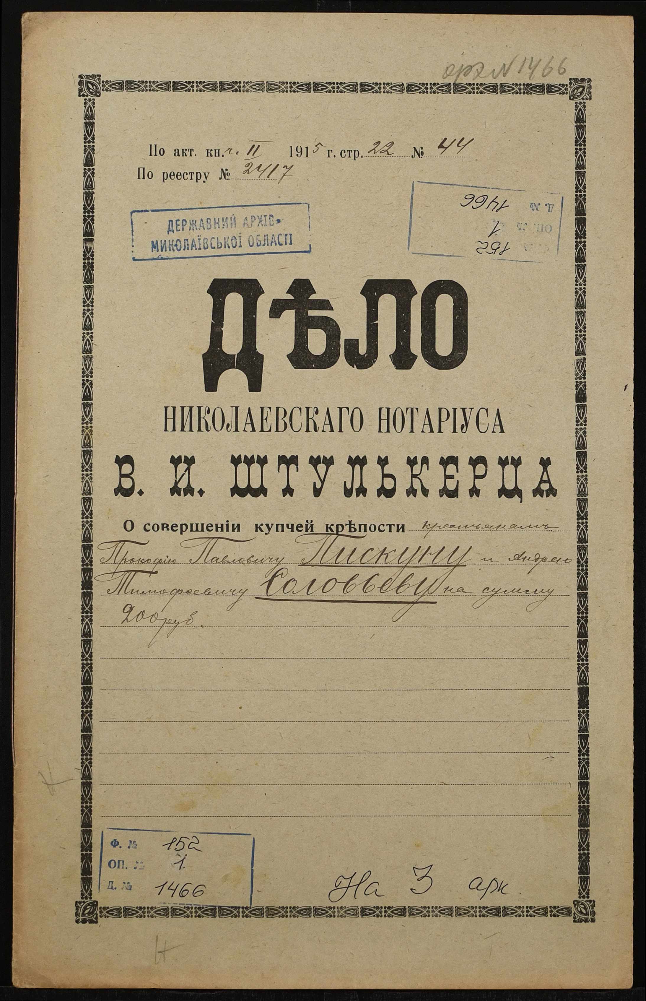Фонд 152 / Опис 1 / Справа 1466