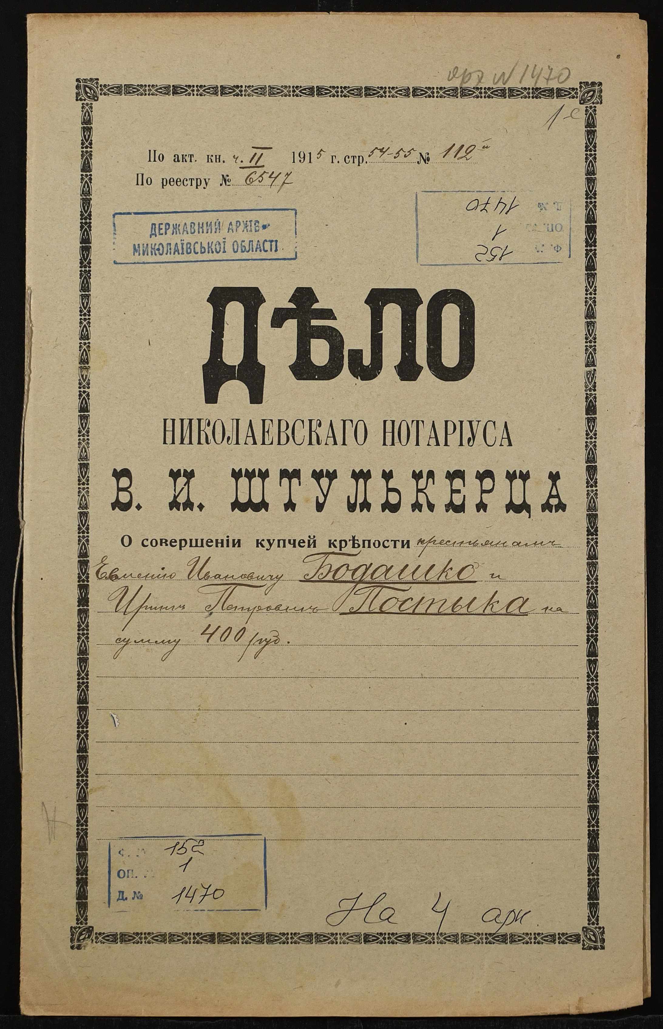 Фонд 152 / Опис 1 / Справа 1470