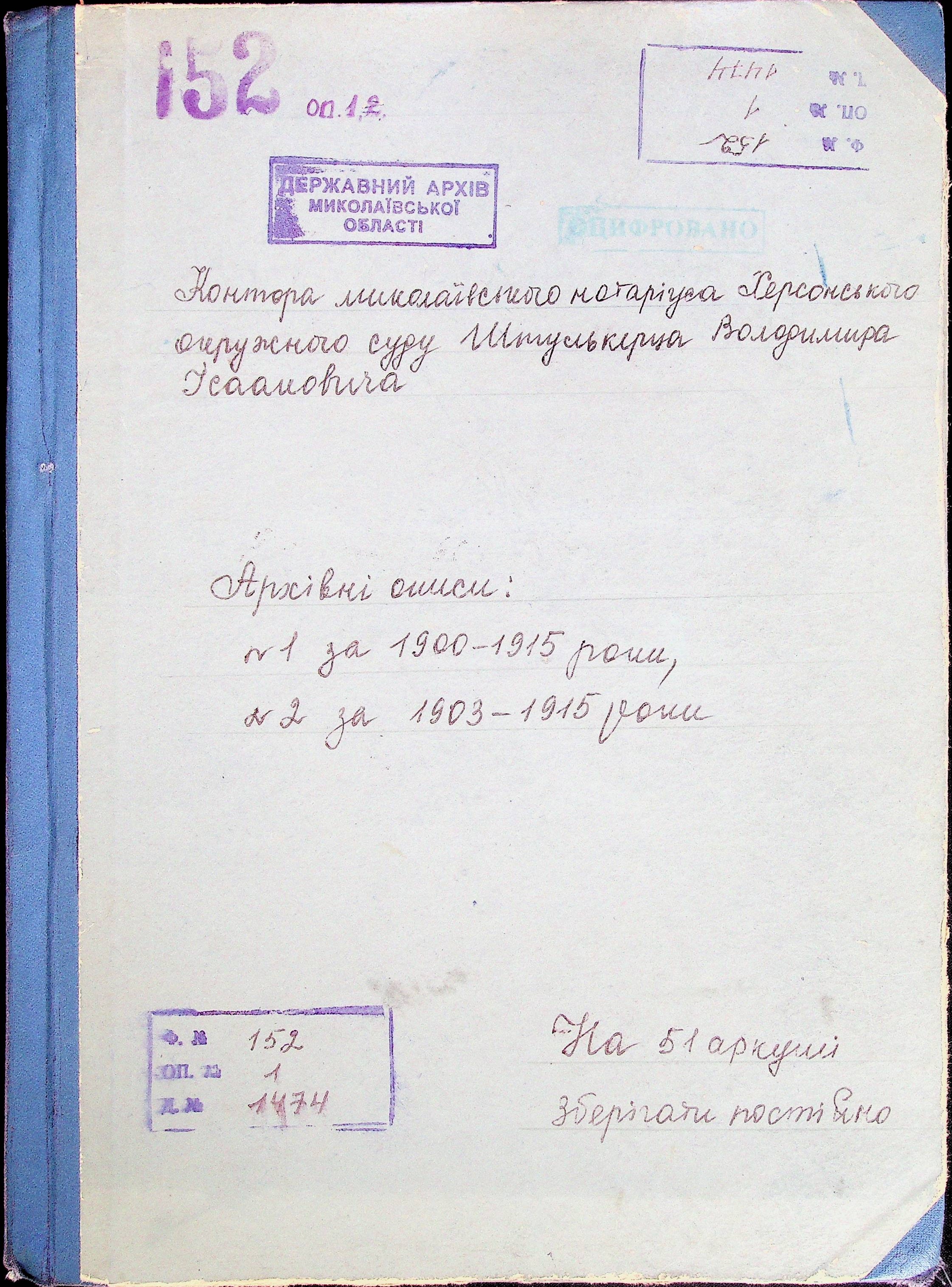 Фонд 152 / Опис 1 / Справа 1474