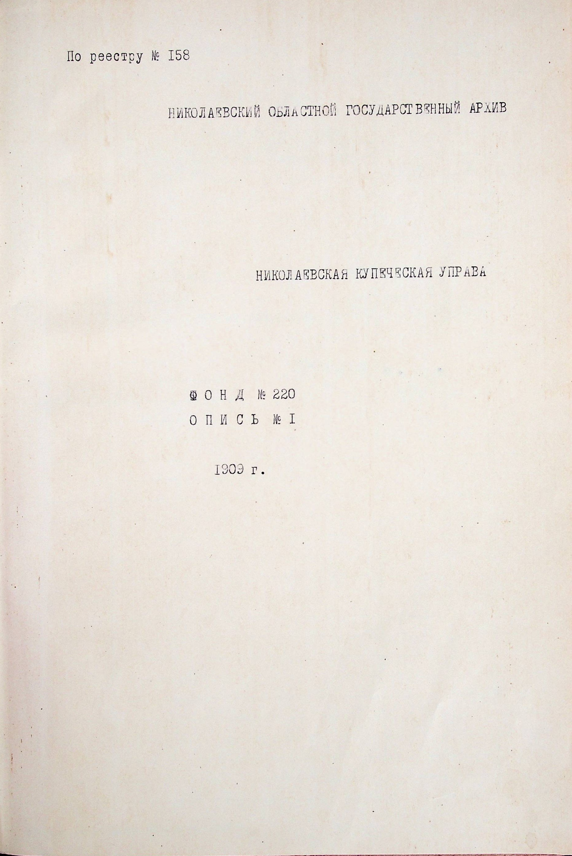 ◦ ◦ Фонд № 220 “Миколаївська купецька управа”