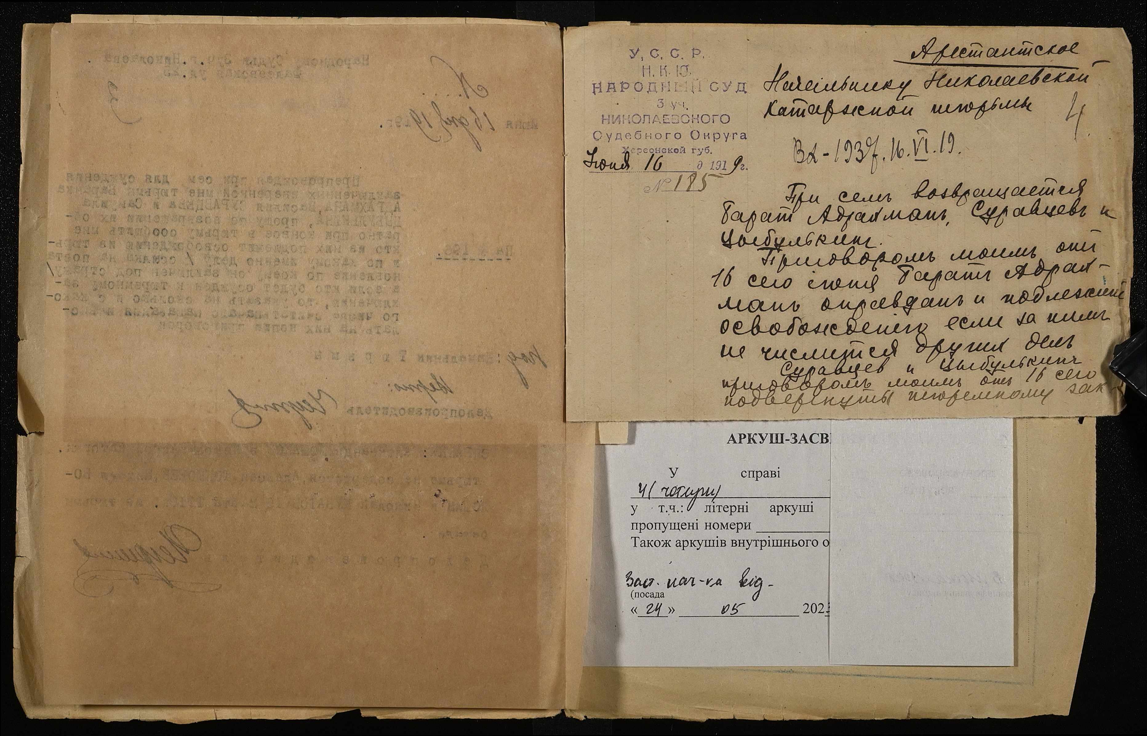 ◦ ◦ ◦ Опис № 4 справ постійного зберігання за 1916, 1918, 1919 роки