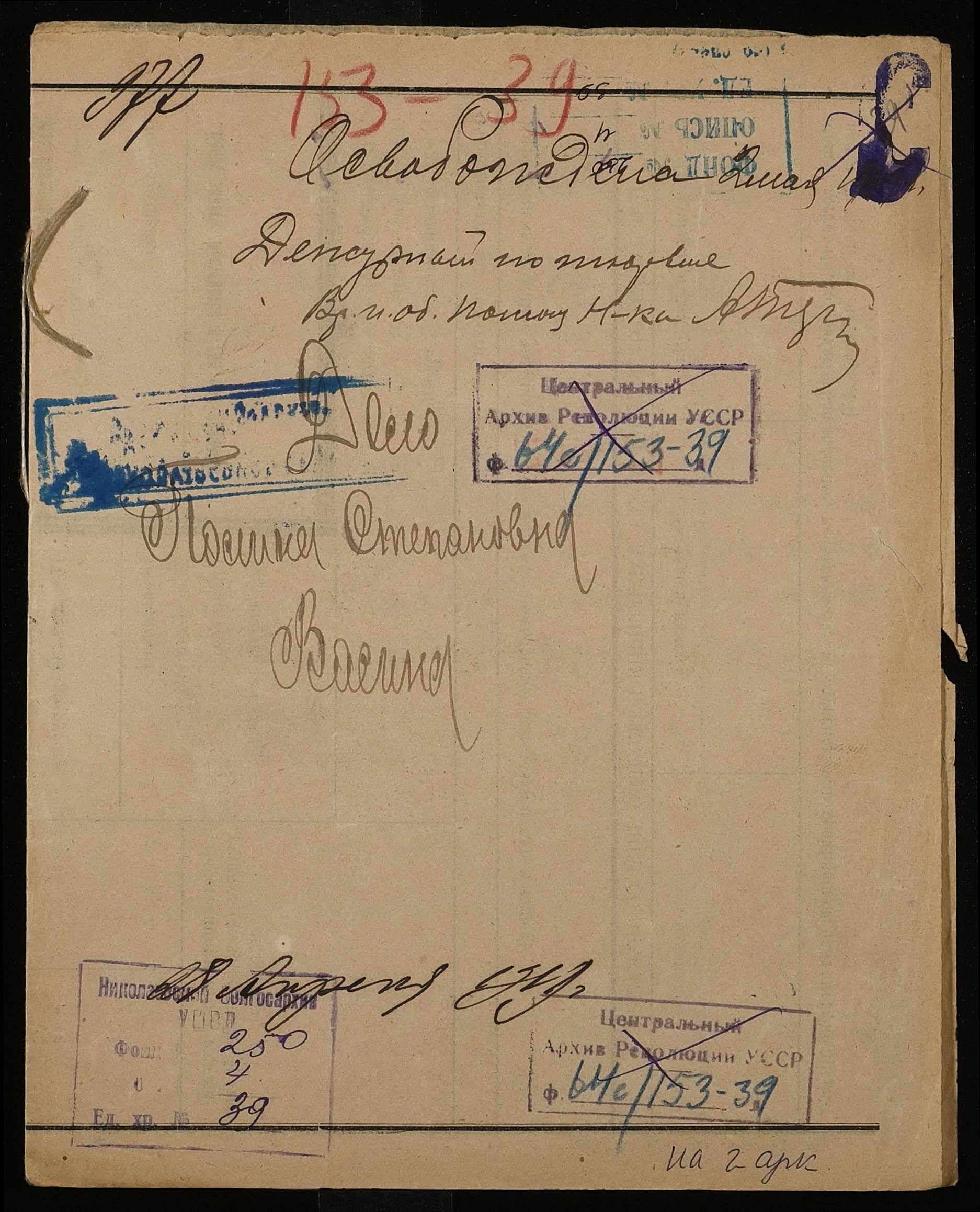 • • • • Справа № 39 “Васіна Поліна Степанівна (Васина Полина Степановна)”