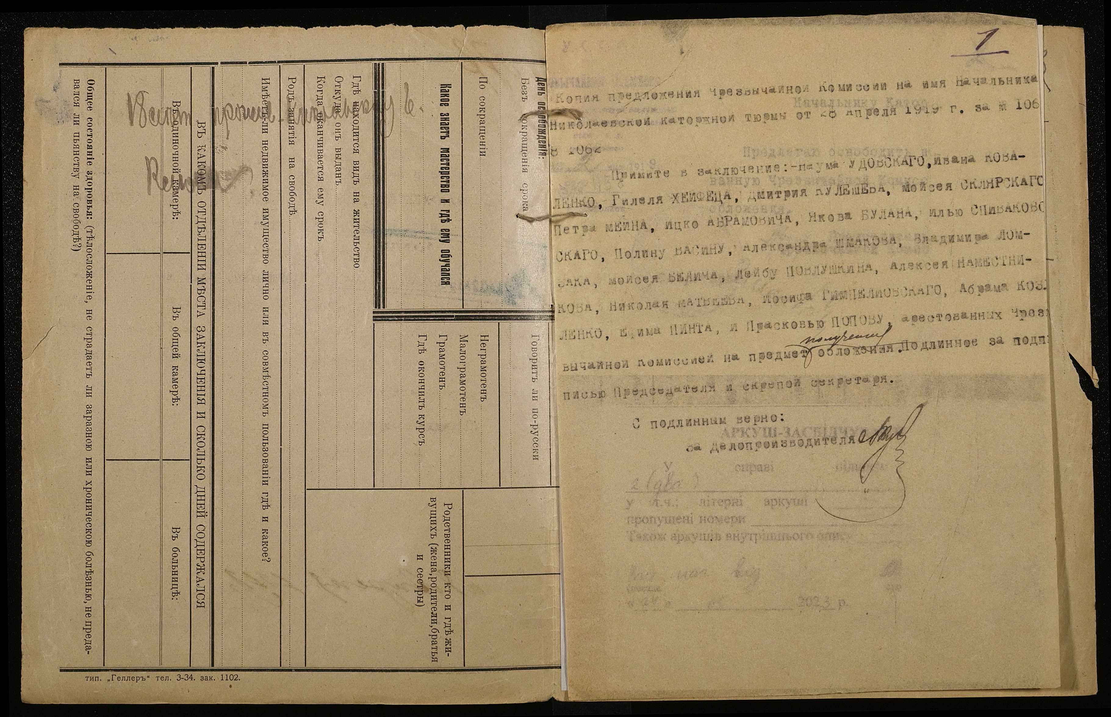 ◦ ◦ Фонд № 250 “Миколаївська каторжна тюрма № 2”