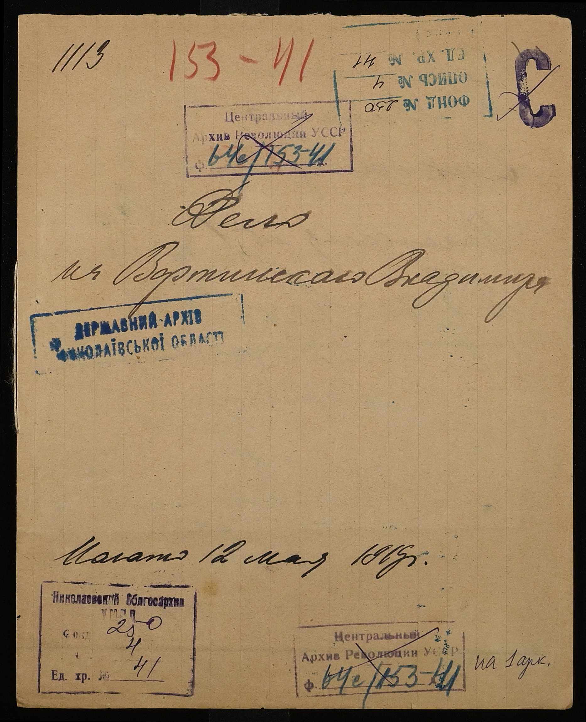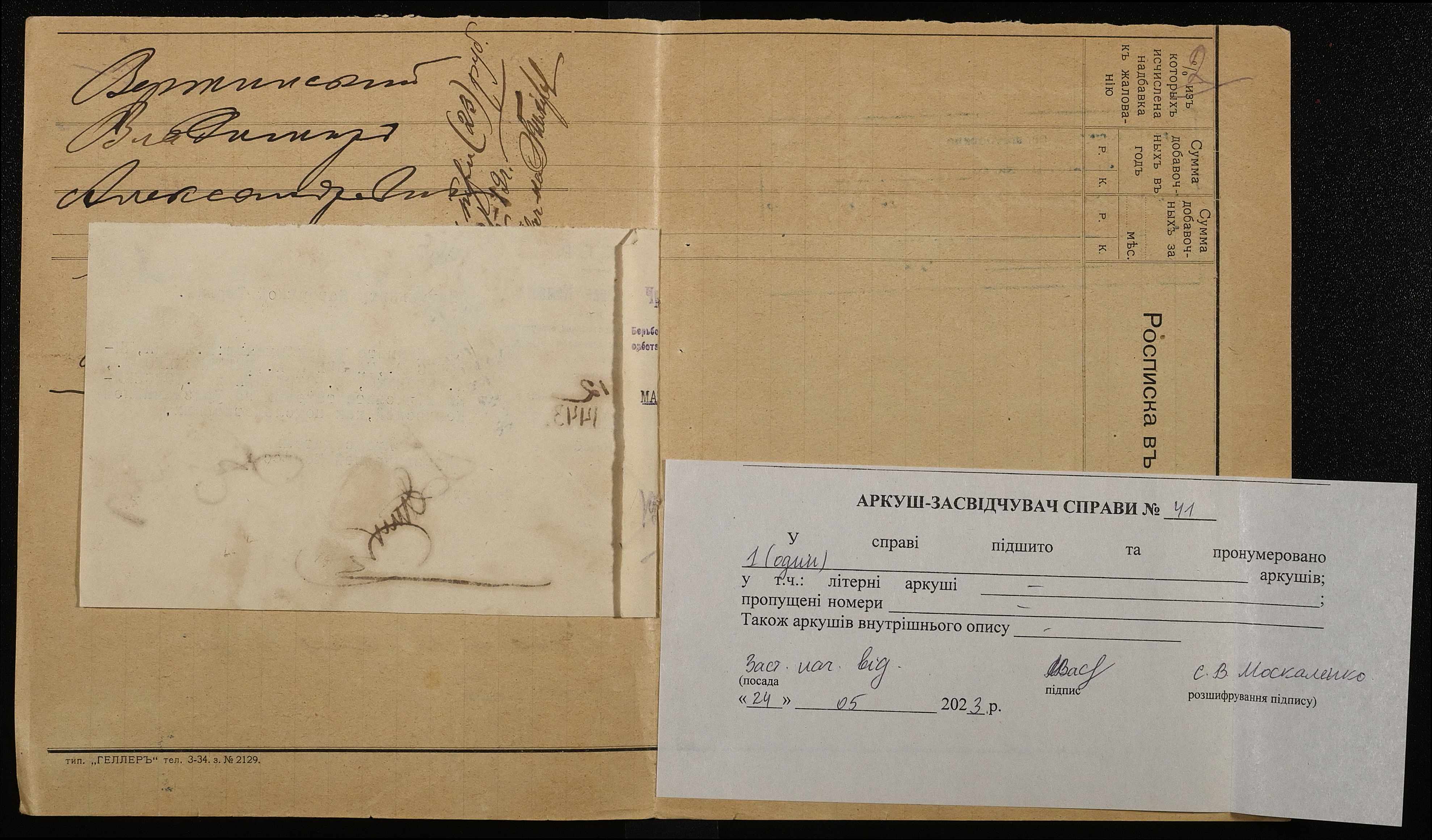 • • • • Справа № 41 “Вертінський Володимир Олександрович (Вертинский Владимир Александрович)”