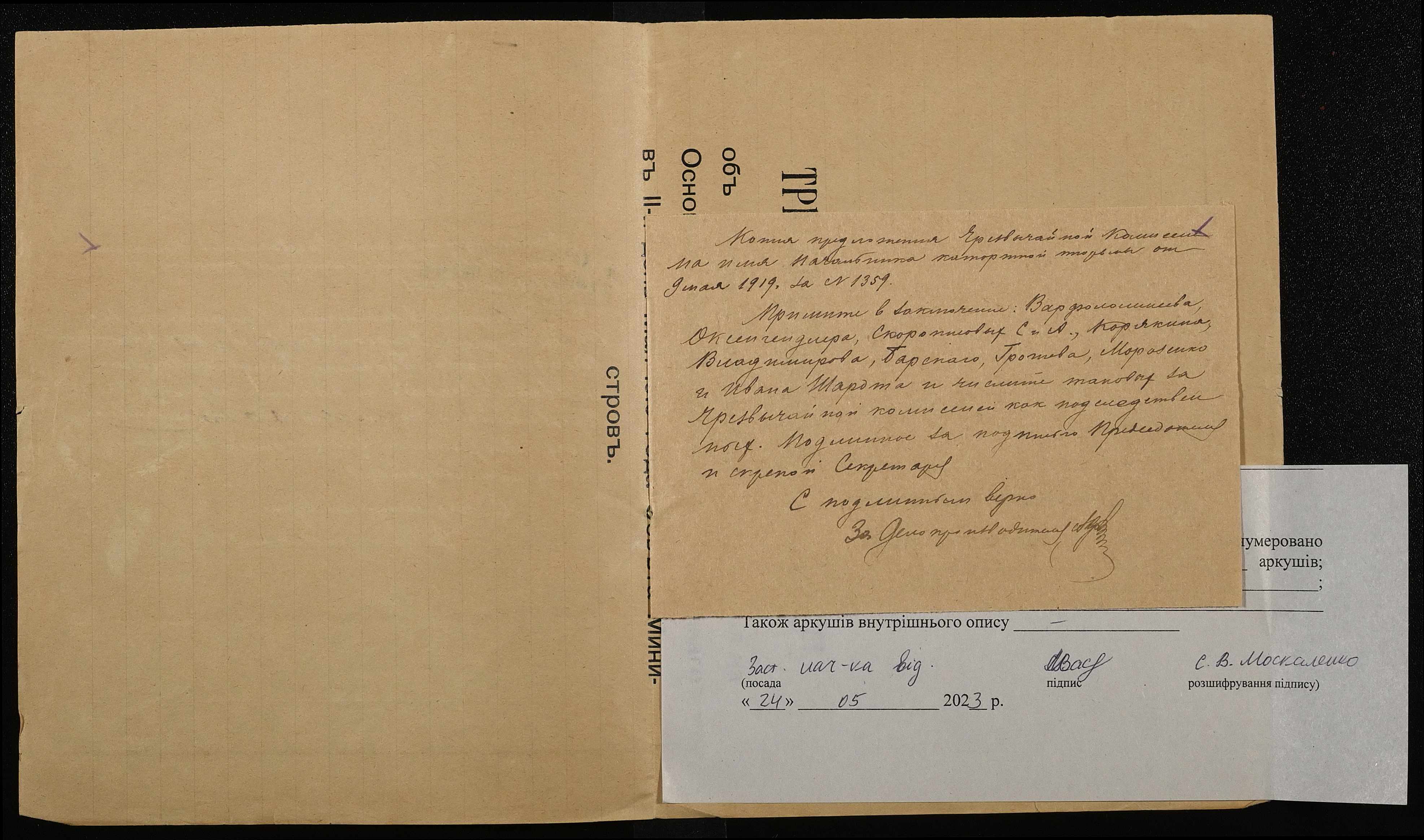 ◦ ◦ ◦ Опис № 4 справ постійного зберігання за 1916, 1918, 1919 роки