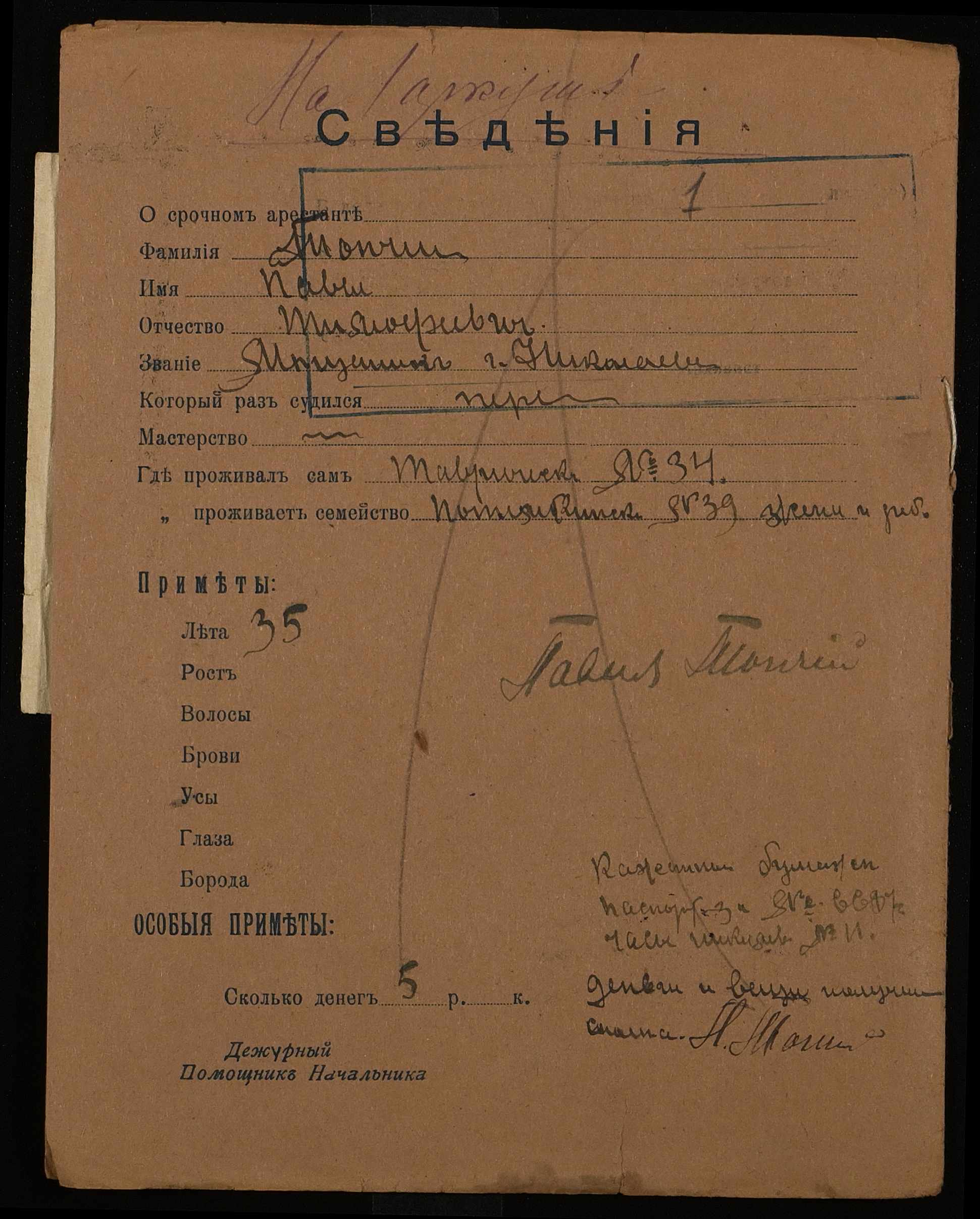 ◦ ◦ ◦ Опис № 4 справ постійного зберігання за 1916, 1918, 1919 роки
