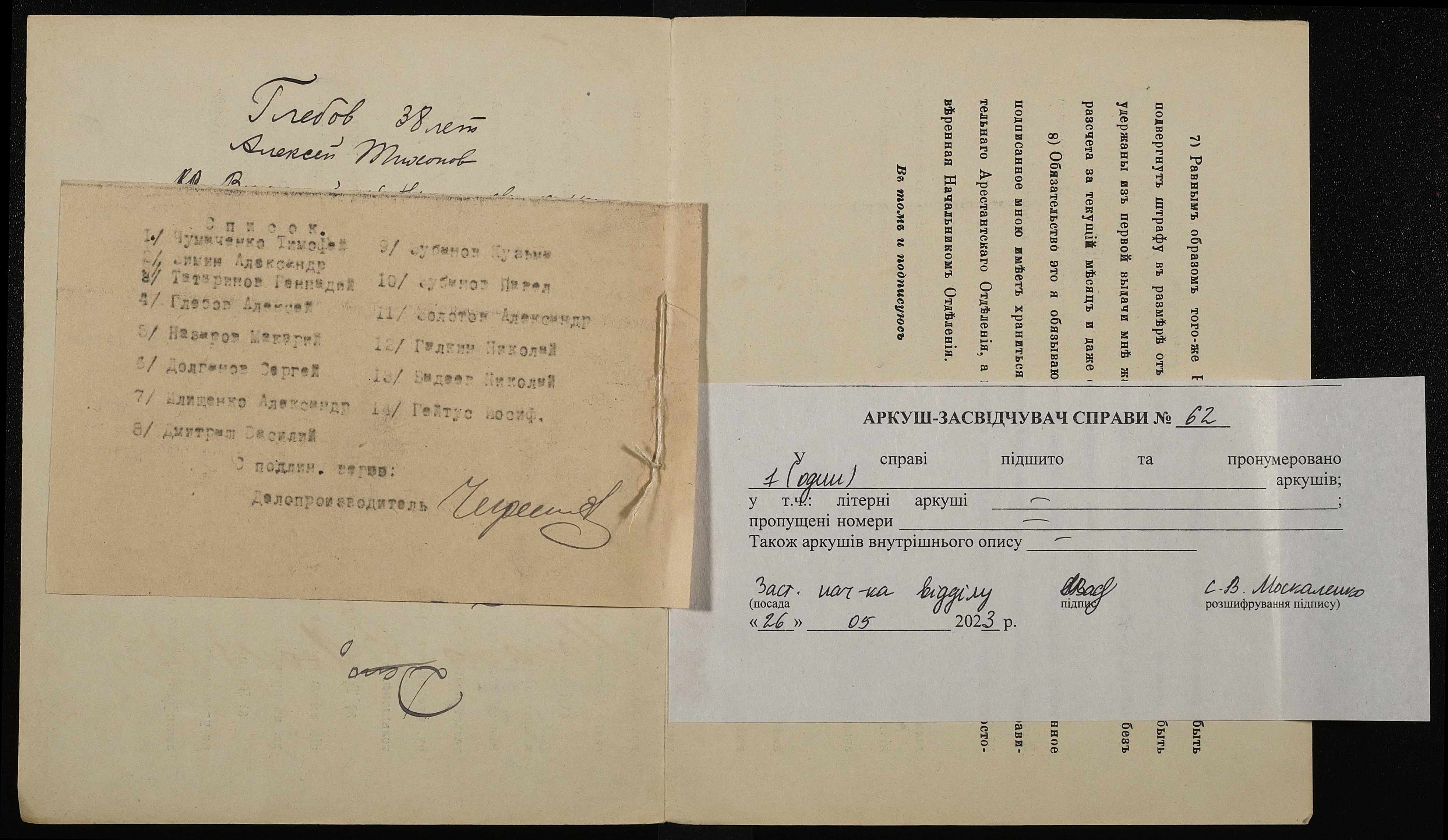 • • • • Справа № 62 “Глєбов Олексій Тихонович (Глебов Алексей Тихонович)”