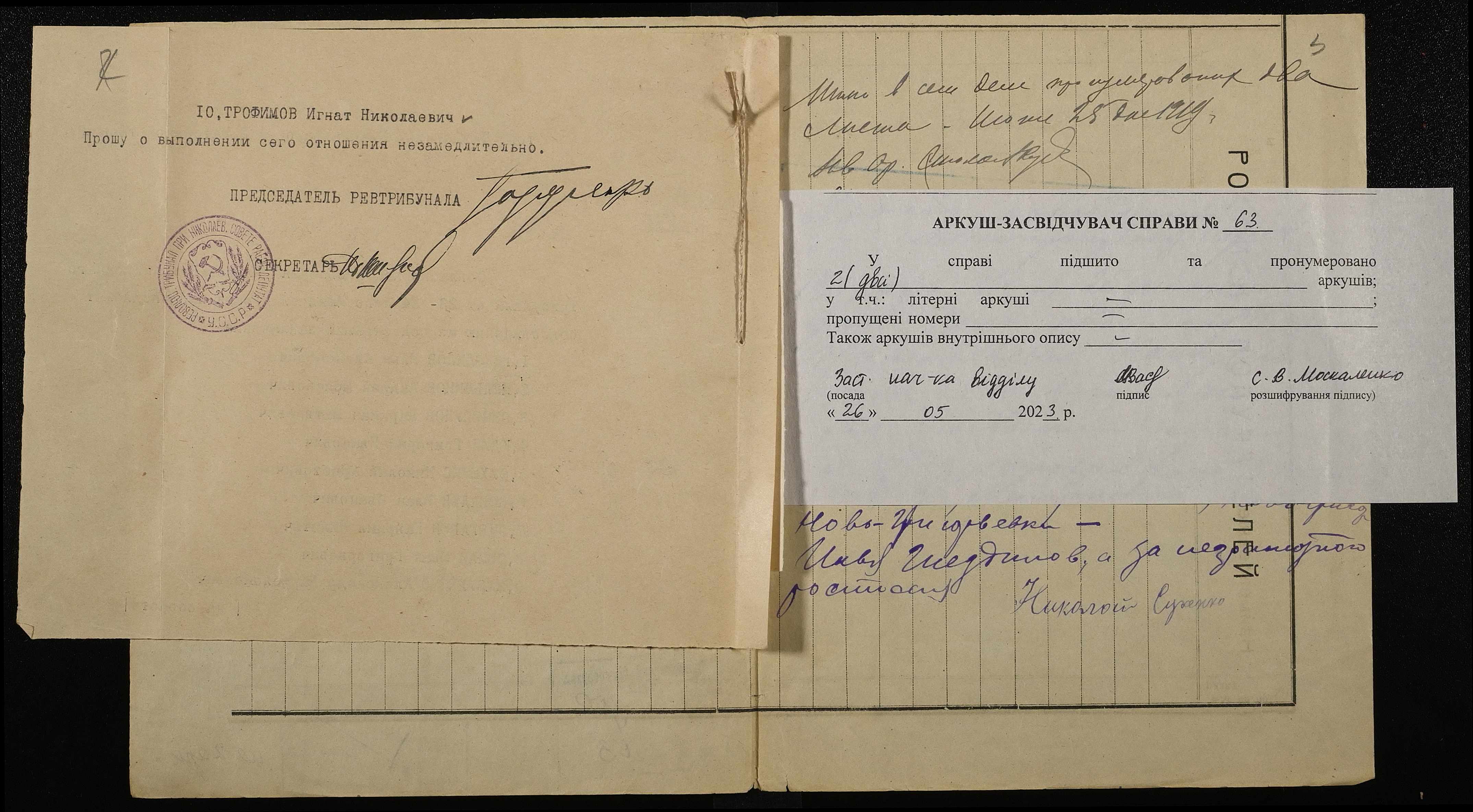 • • • • Справа № 63 “Гнєзділов Ілля Олексійович (Гнездилов Илья Алексеевич)”