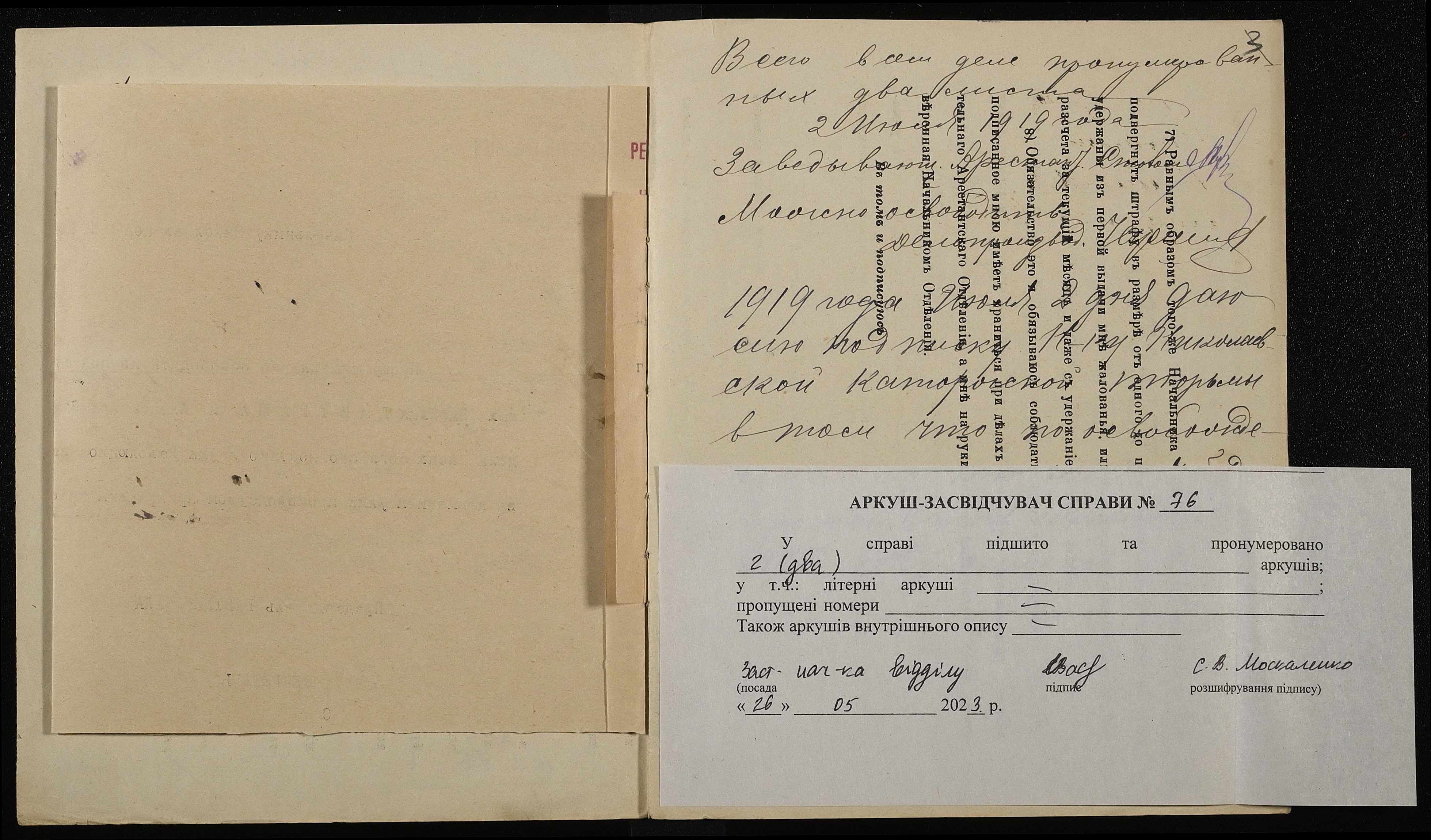 ◦ ◦ ◦ Опис № 4 справ постійного зберігання за 1916, 1918, 1919 роки