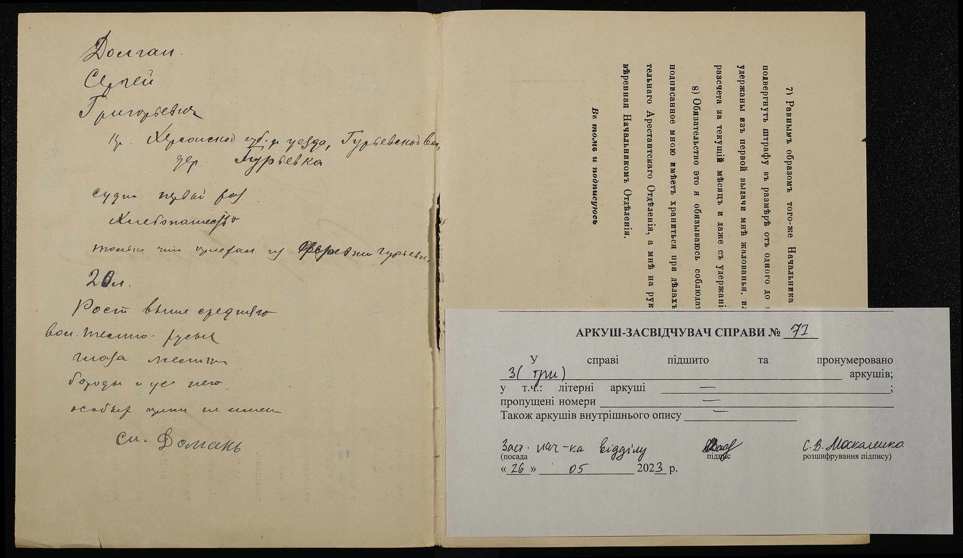 • • • • Справа № 77 “Долган Сергій Григорович (Долган Сергей Григорьевич)”