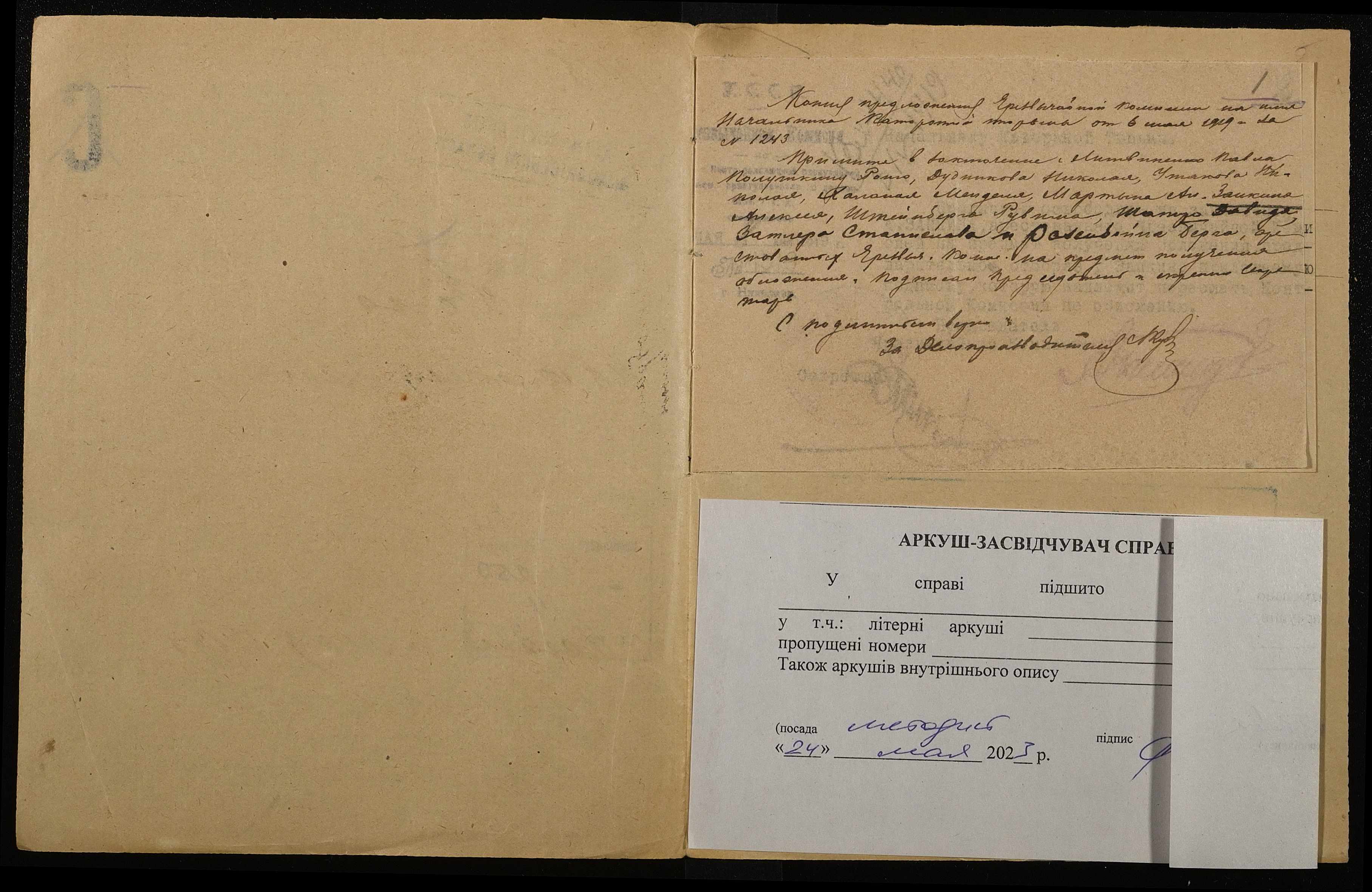 ◦ ◦ ◦ Опис № 4 справ постійного зберігання за 1916, 1918, 1919 роки