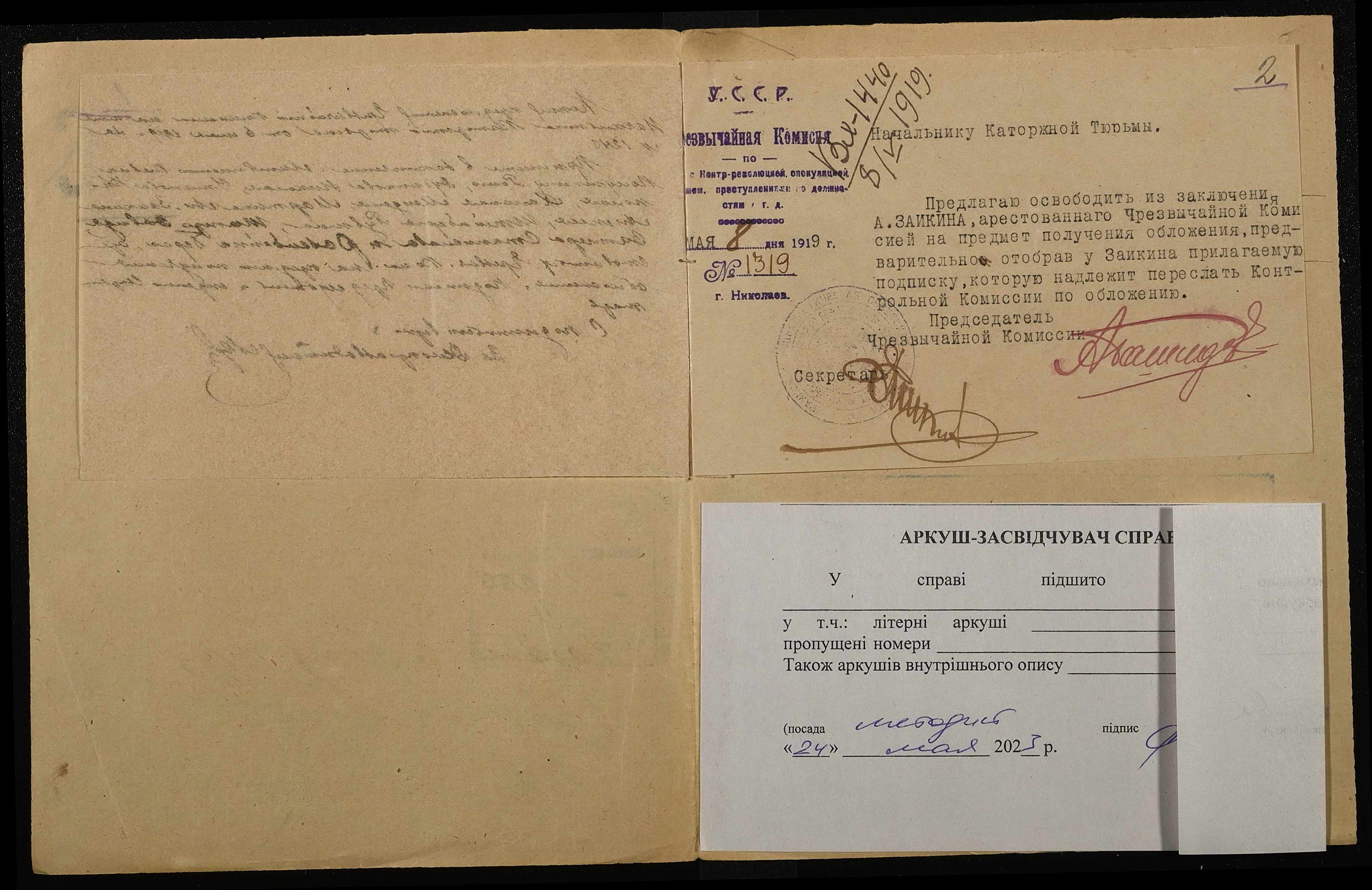 ◦ ◦ Фонд № 250 “Миколаївська каторжна тюрма № 2”
