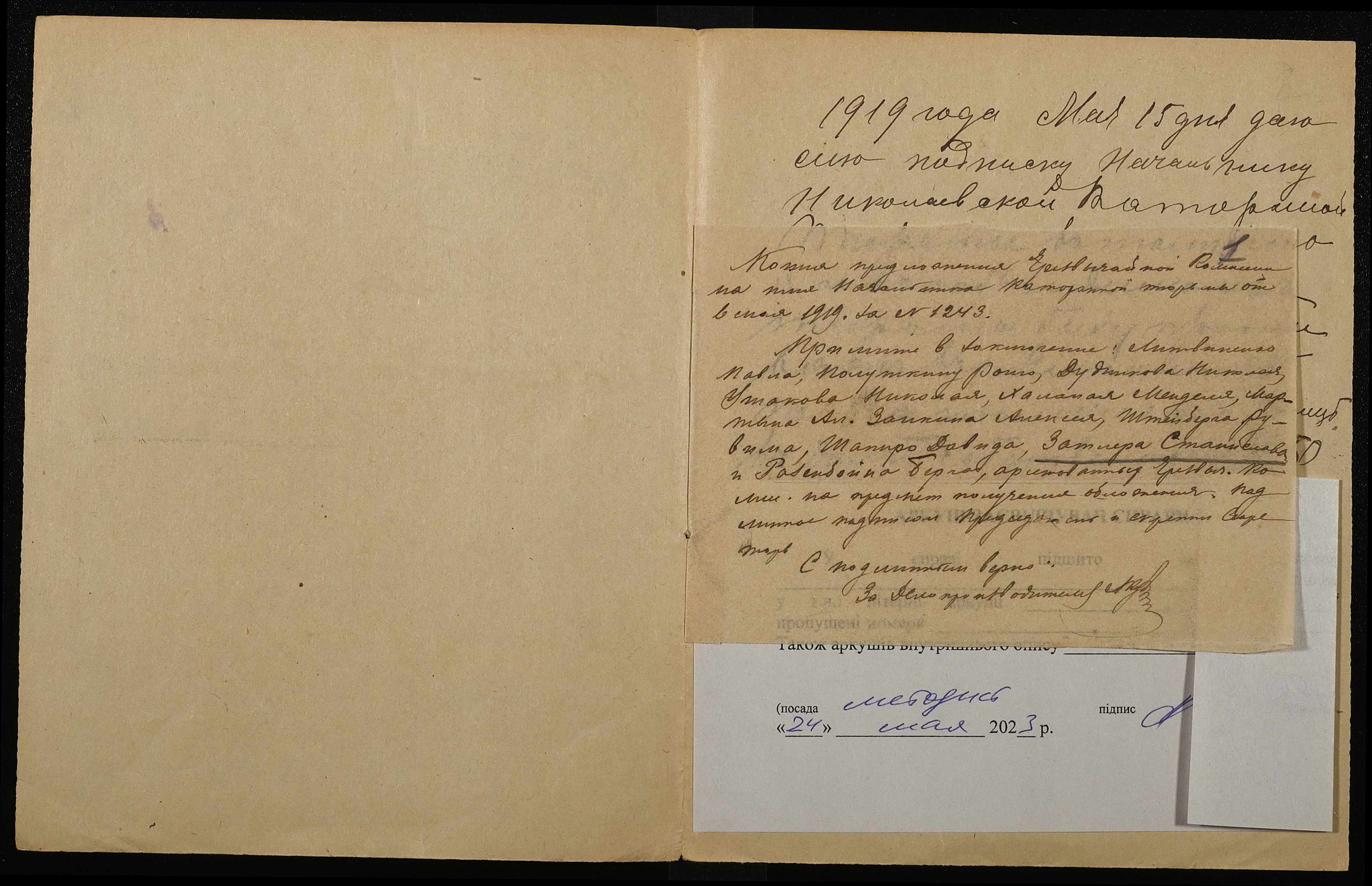 ◦ ◦ ◦ Опис № 4 справ постійного зберігання за 1916, 1918, 1919 роки