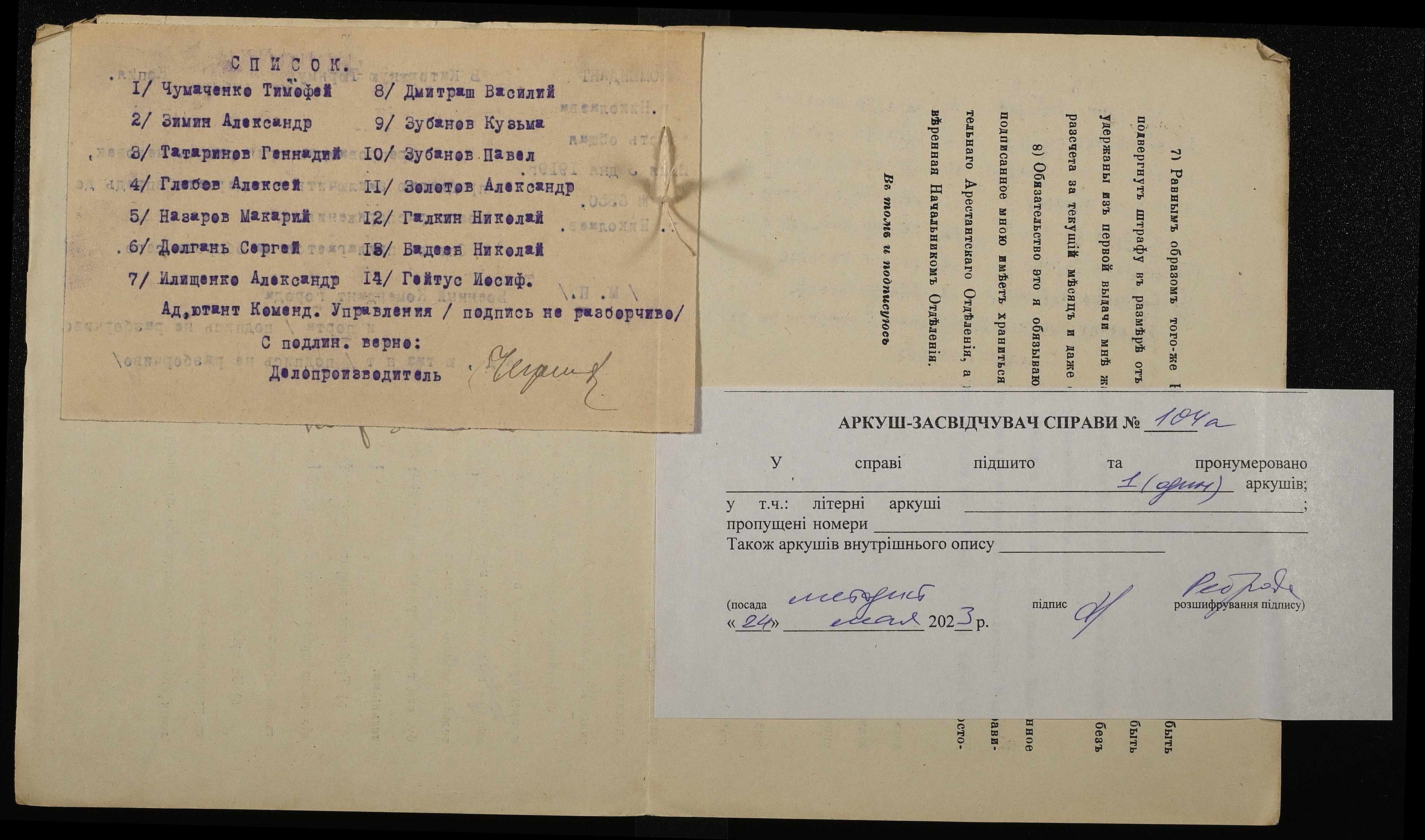• • • • Справа № 104а “Зубанов Кузьма Григорович (Зубанов Кузьма Григорьевич)”