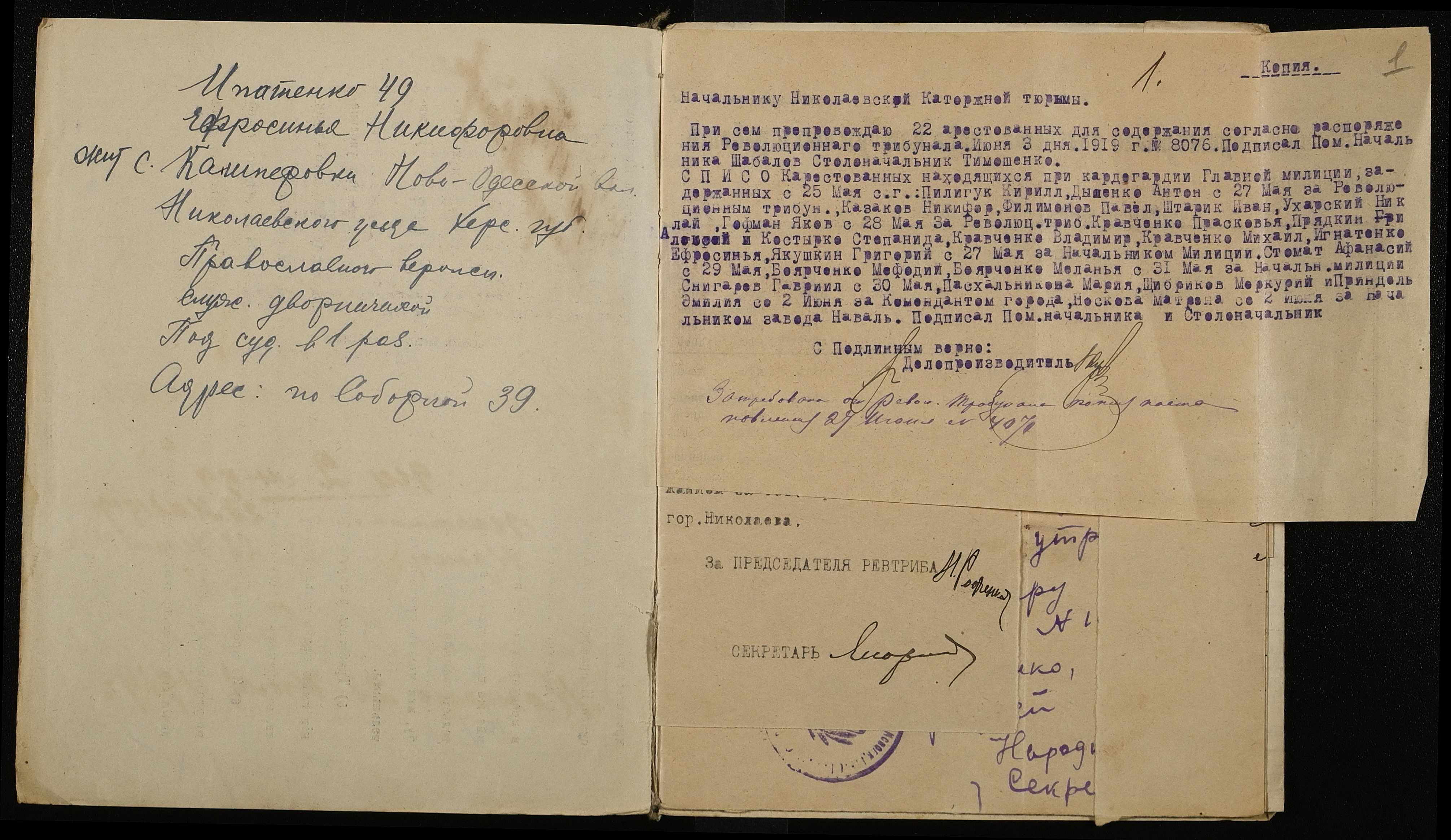 • • • • Справа № 107 “Іпатенко Єфросинія Микитівна (Ипатенко Ефросиния Никитовна)”