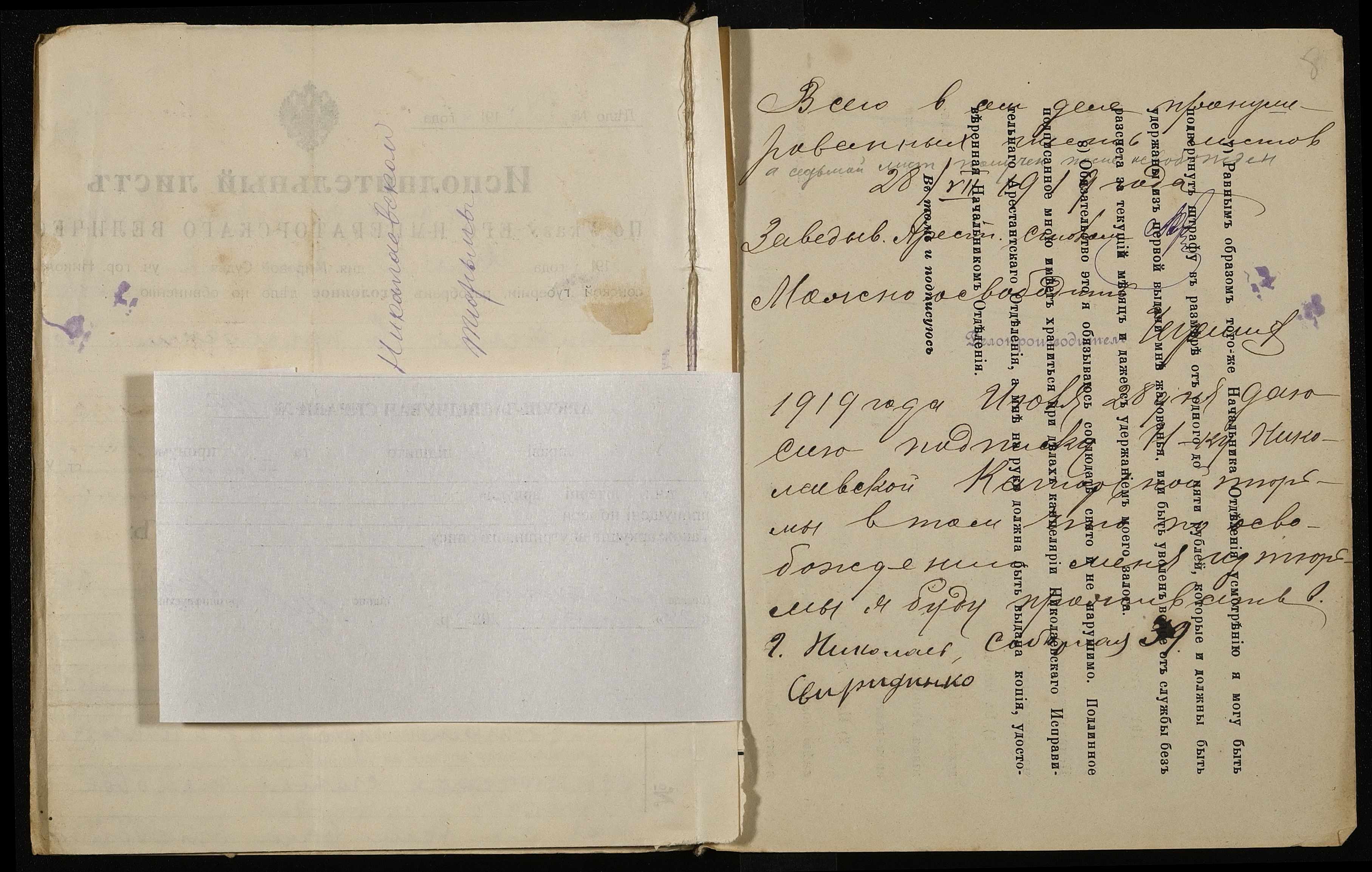 ◦ ◦ ◦ Опис № 4 справ постійного зберігання за 1916, 1918, 1919 роки