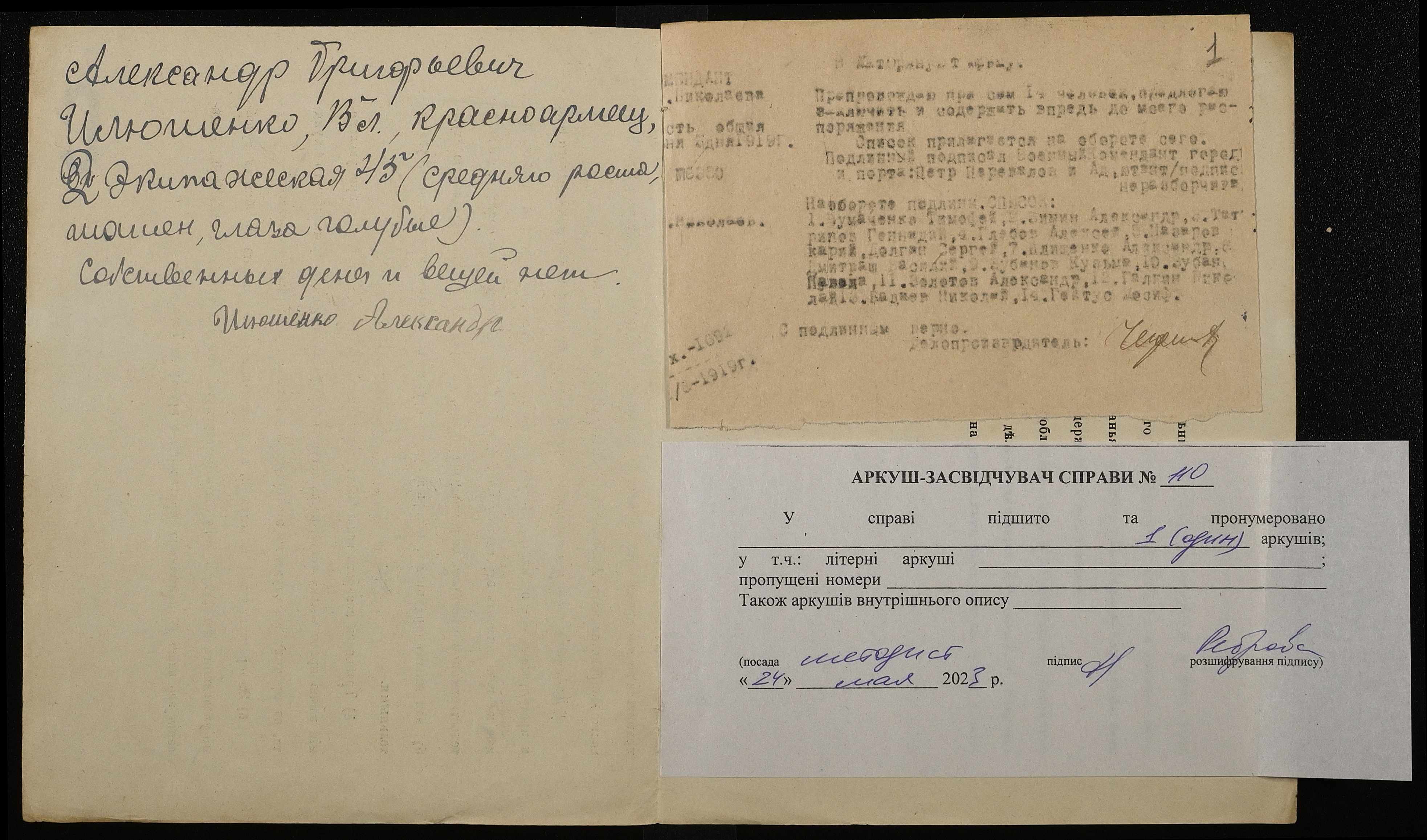 • • • • Справа № 110 “Ілюшенко Олександр Григорович (Илюшенко Александр Григорьевич)”