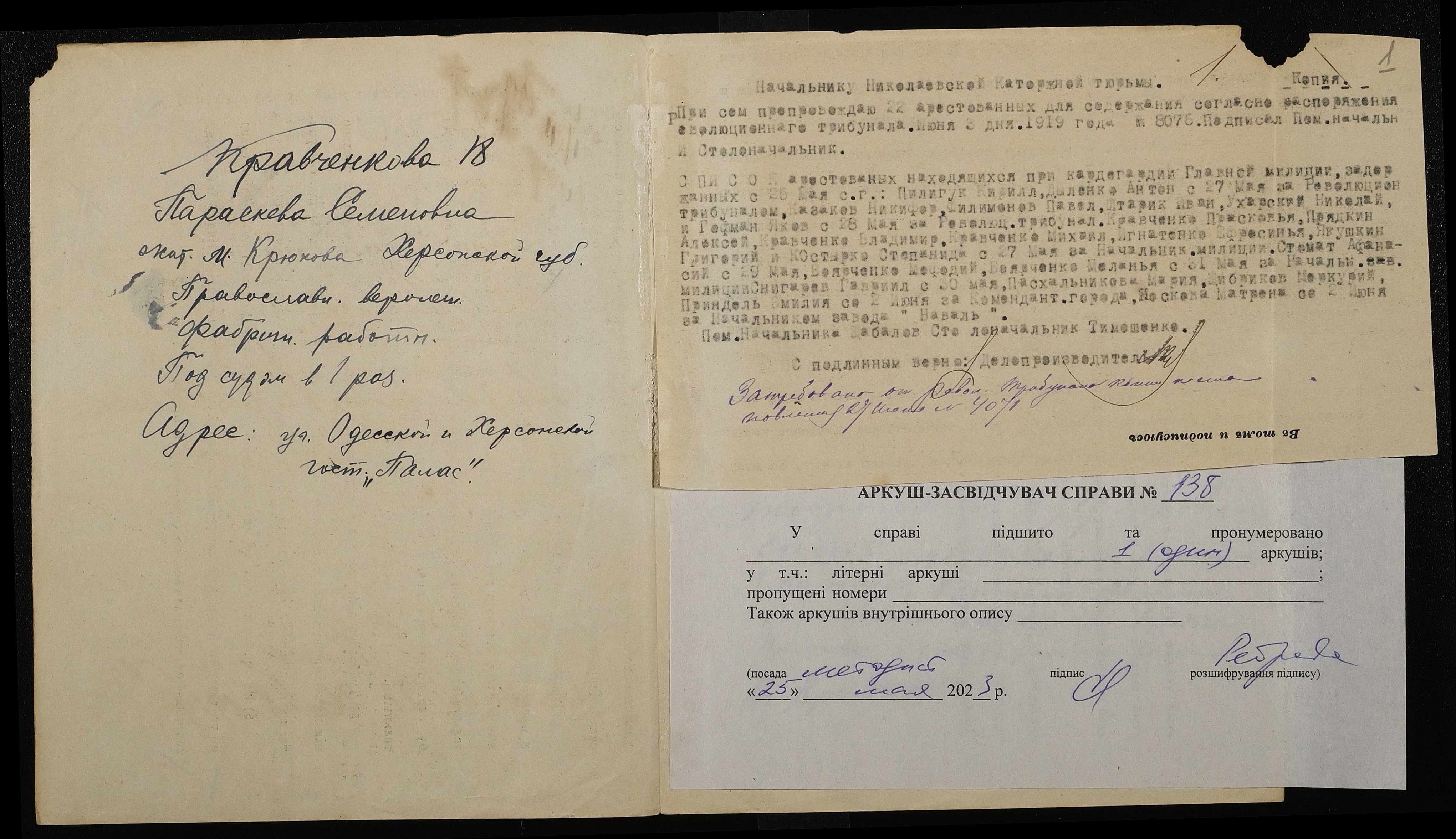 ◦ ◦ Фонд № 250 “Миколаївська каторжна тюрма № 2”