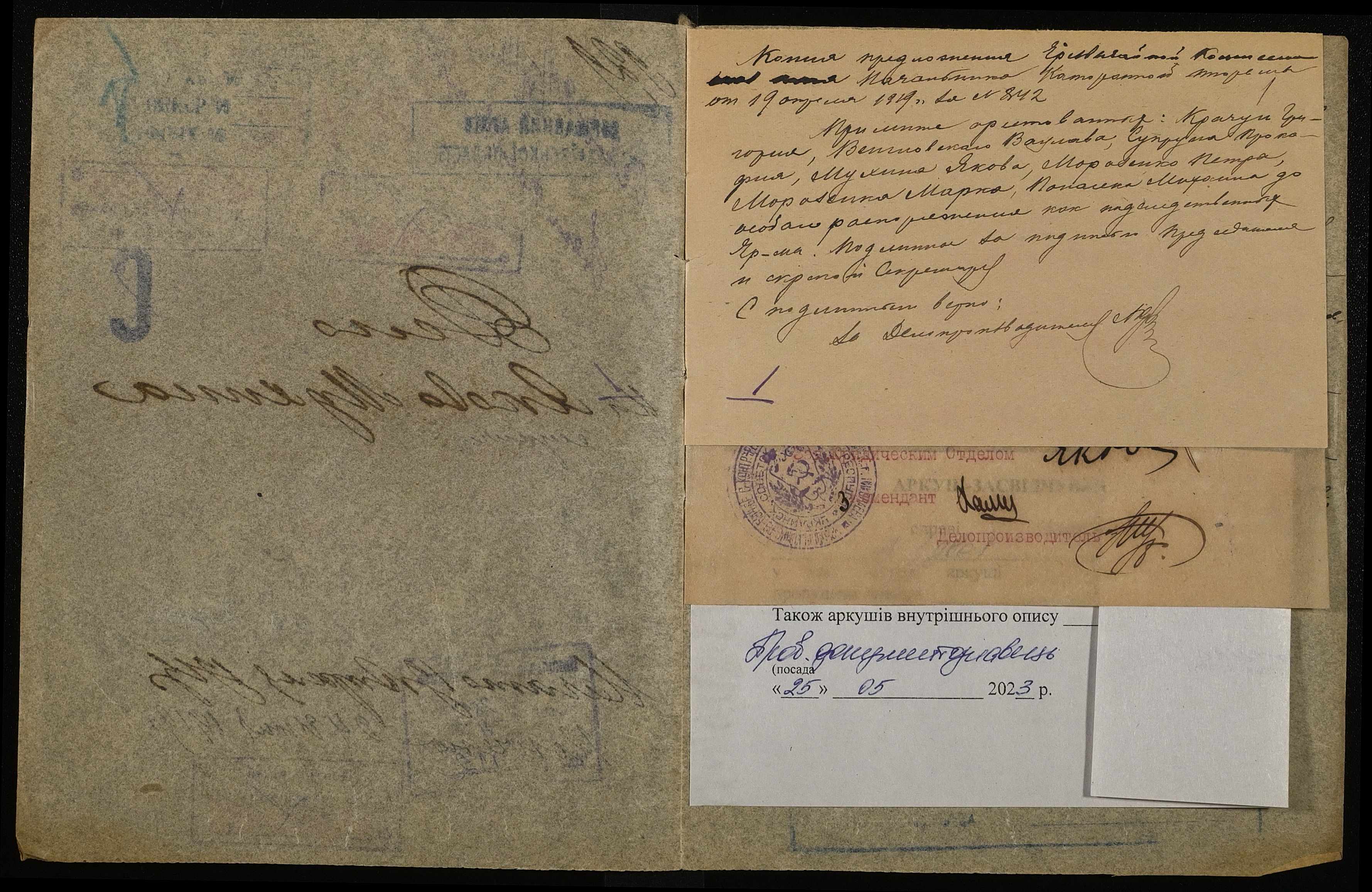 ◦ ◦ ◦ Опис № 4 справ постійного зберігання за 1916, 1918, 1919 роки