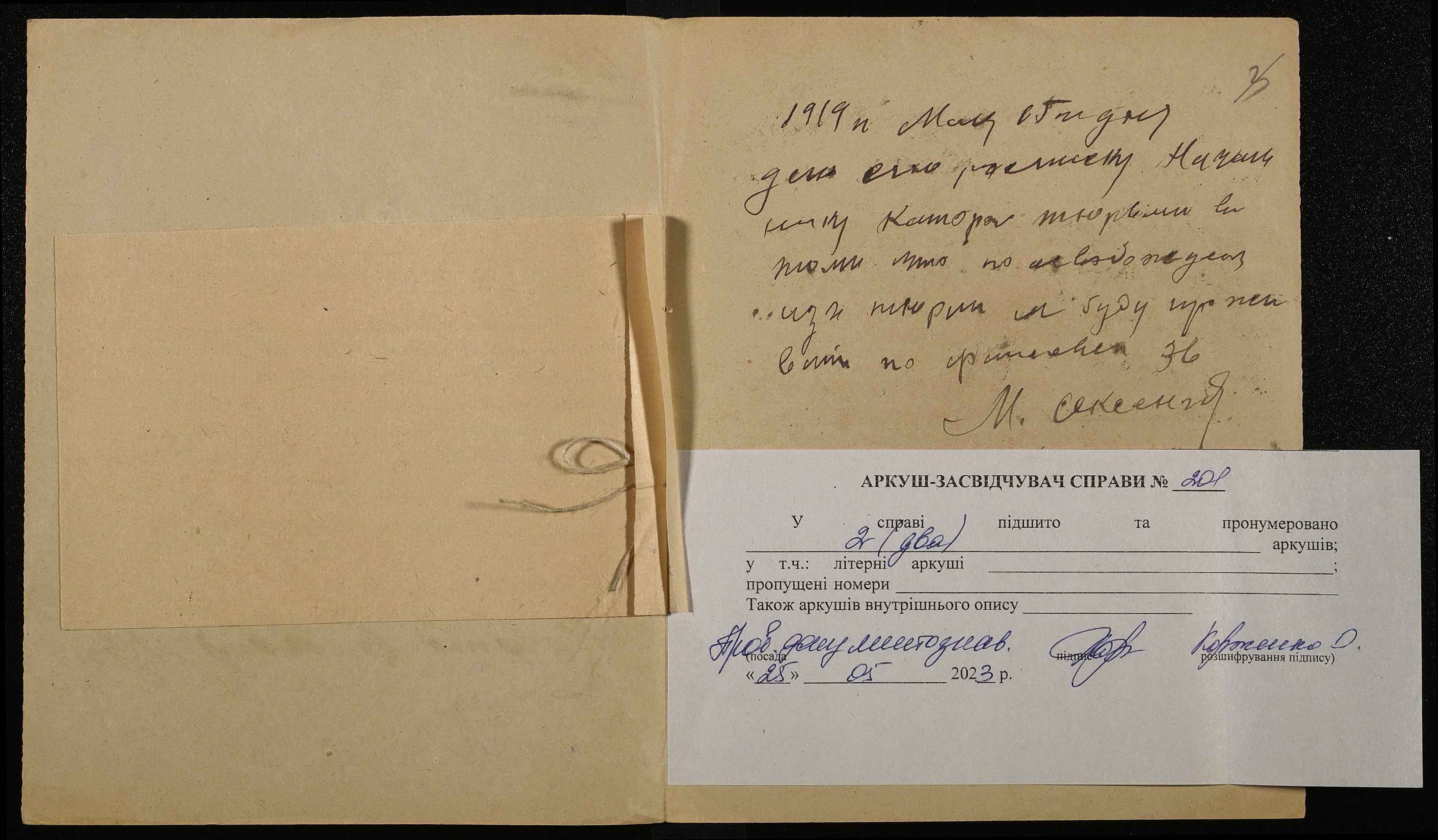 ◦ ◦ ◦ Опис № 4 справ постійного зберігання за 1916, 1918, 1919 роки