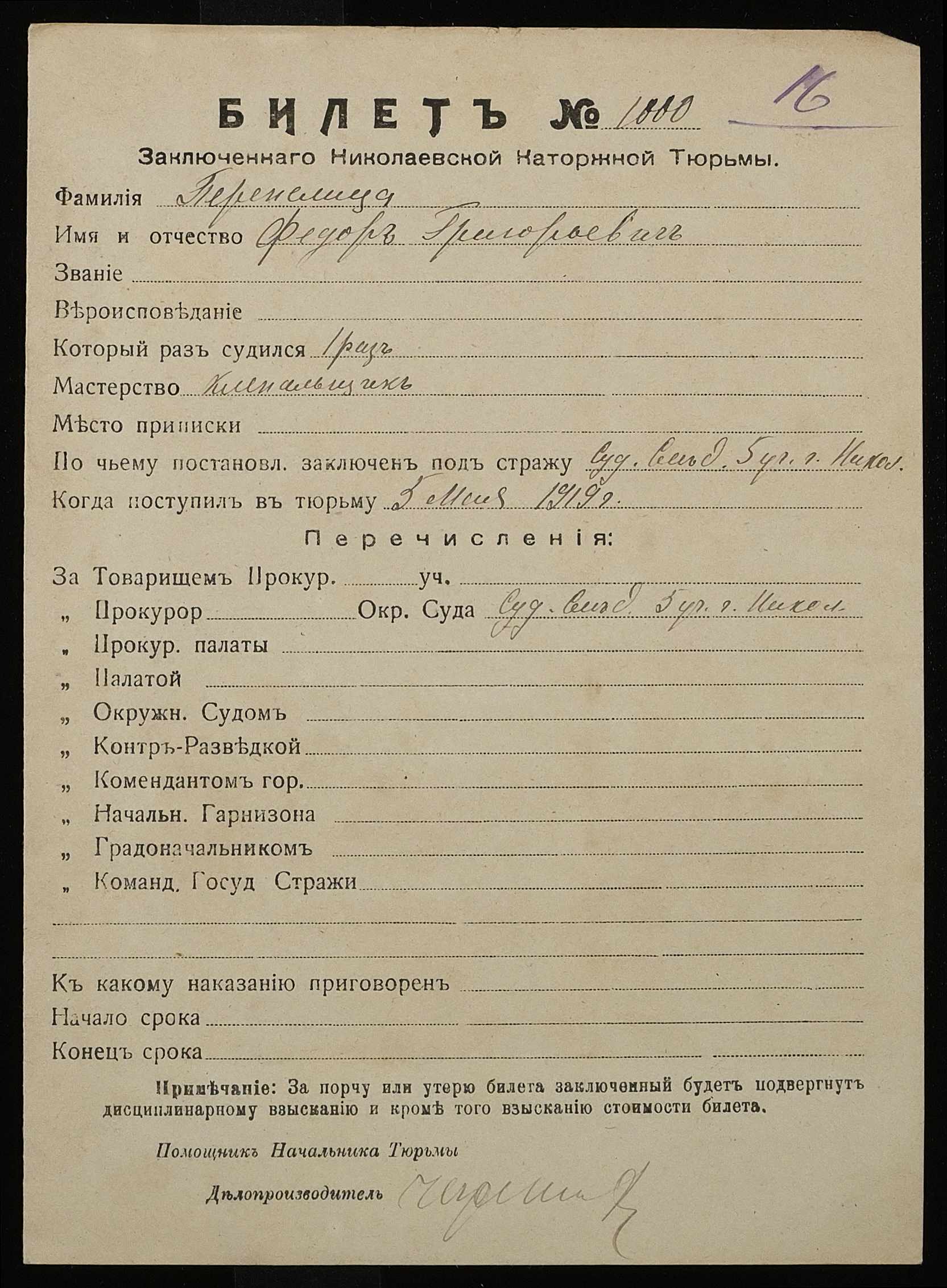 ◦ ◦ Фонд № 250 “Миколаївська каторжна тюрма № 2”