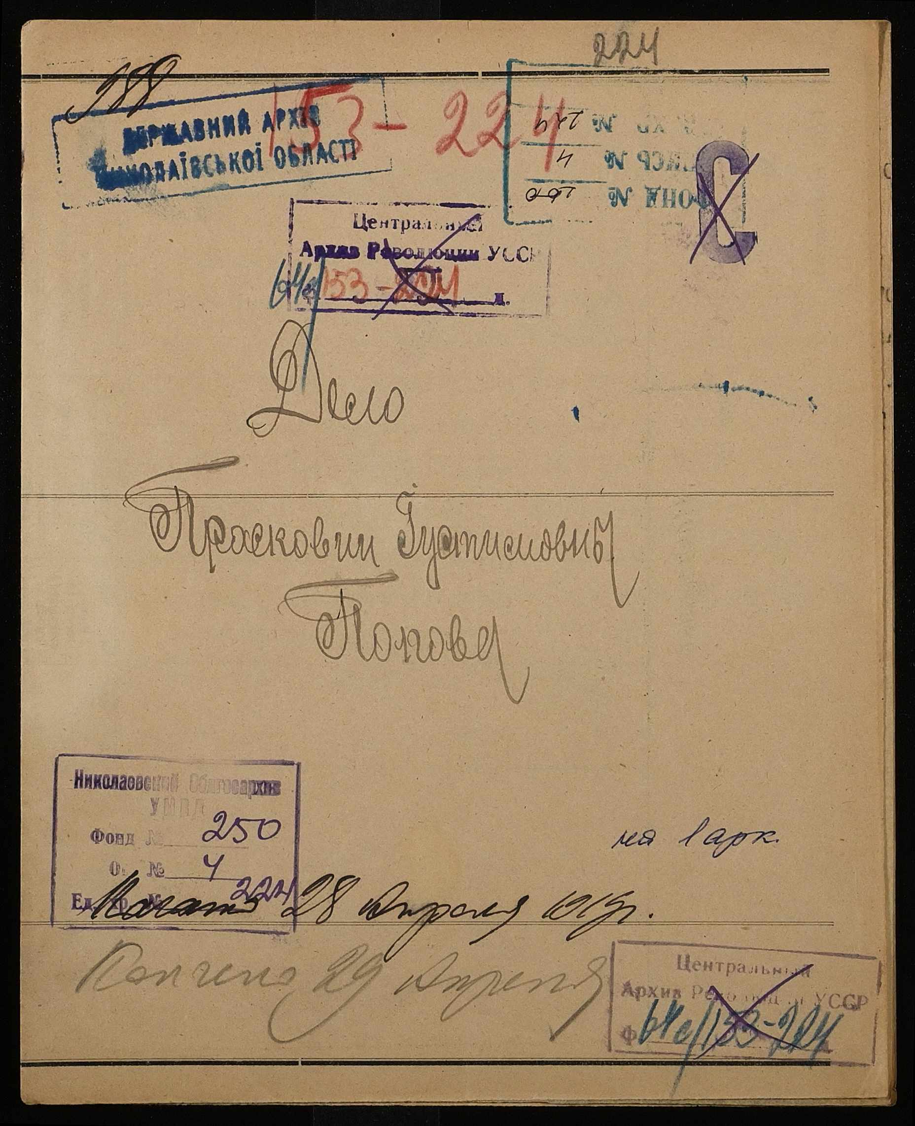 • • • • Справа № 224 “Попова Парасковія Устимівна (Попова Прасковья Устимовна)”
