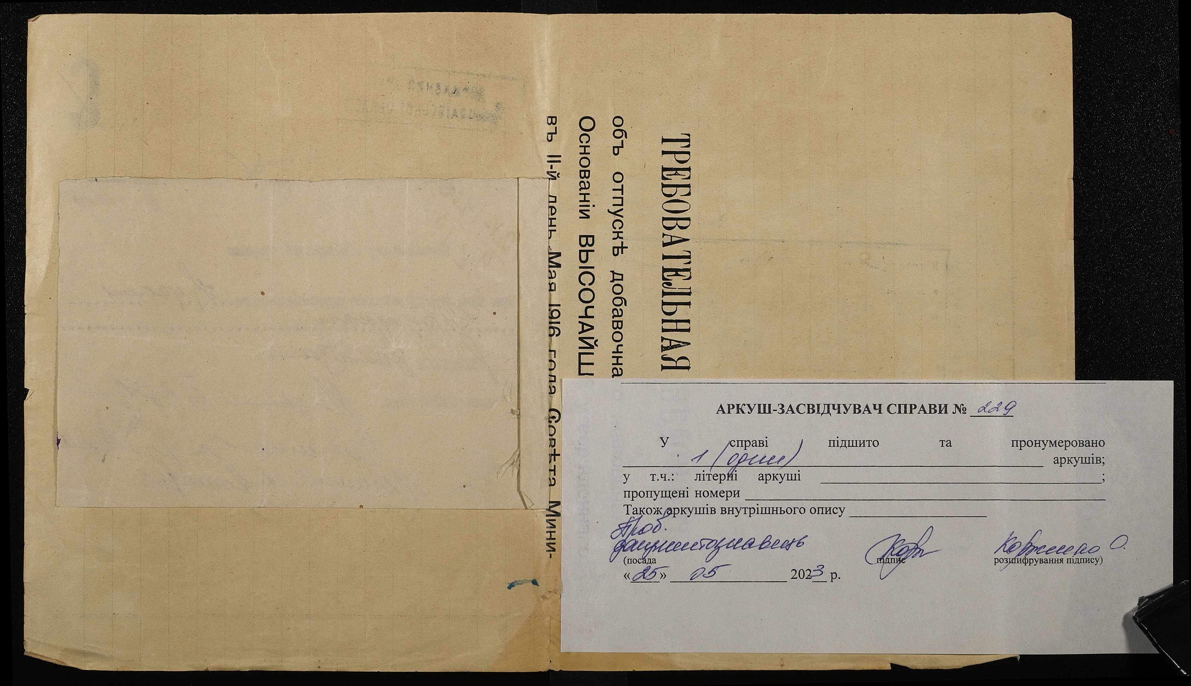 ◦ ◦ ◦ Опис № 4 справ постійного зберігання за 1916, 1918, 1919 роки