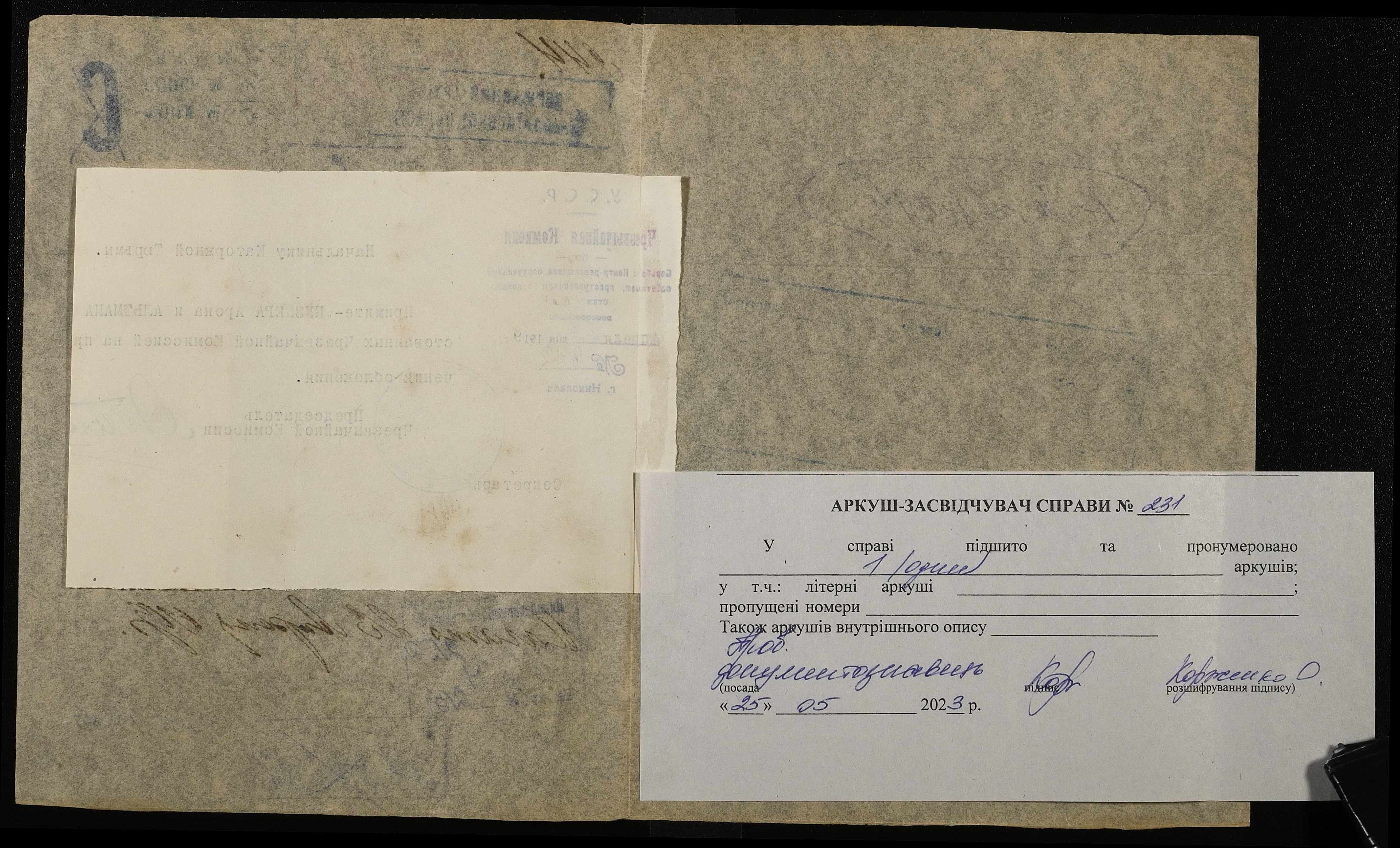 Фонд 250 / Опис 4 / Справа 231