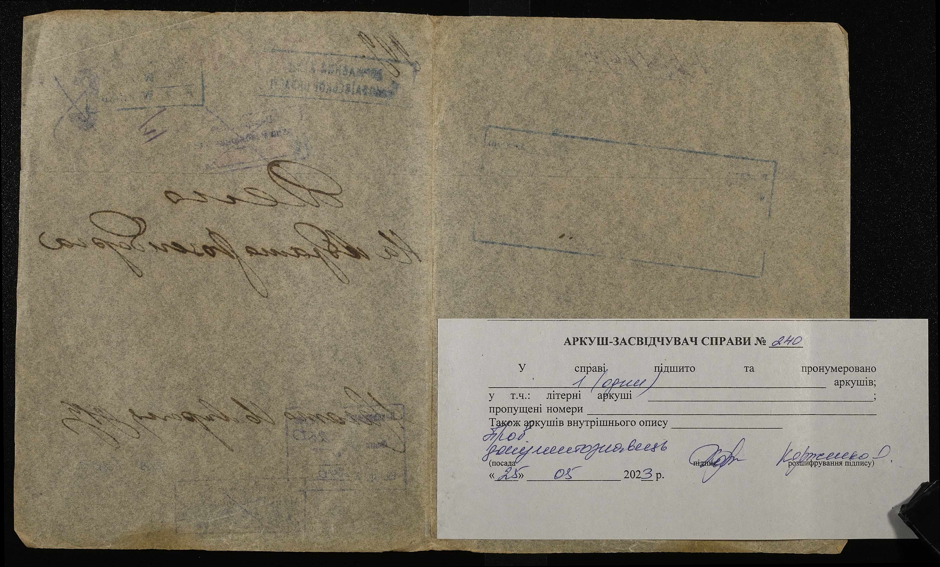 Фонд 250 / Опис 4 / Справа 240