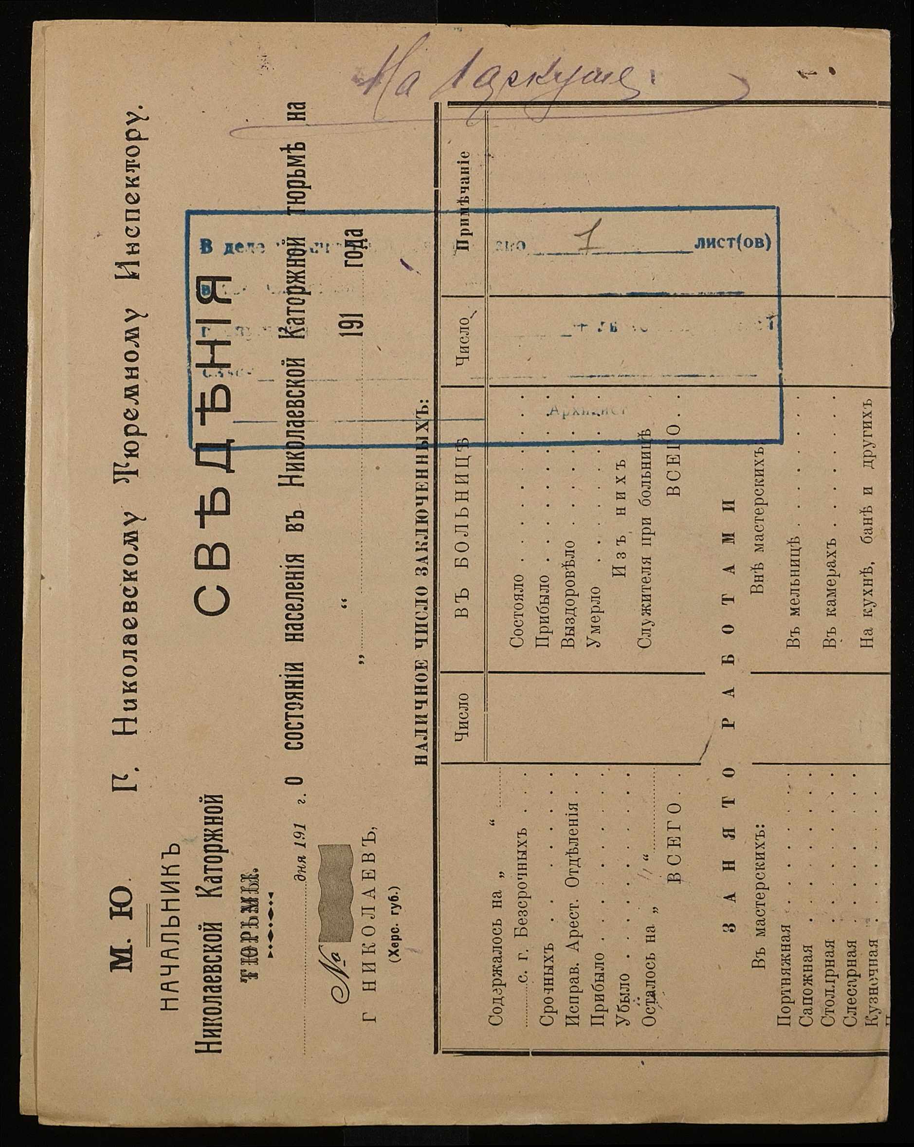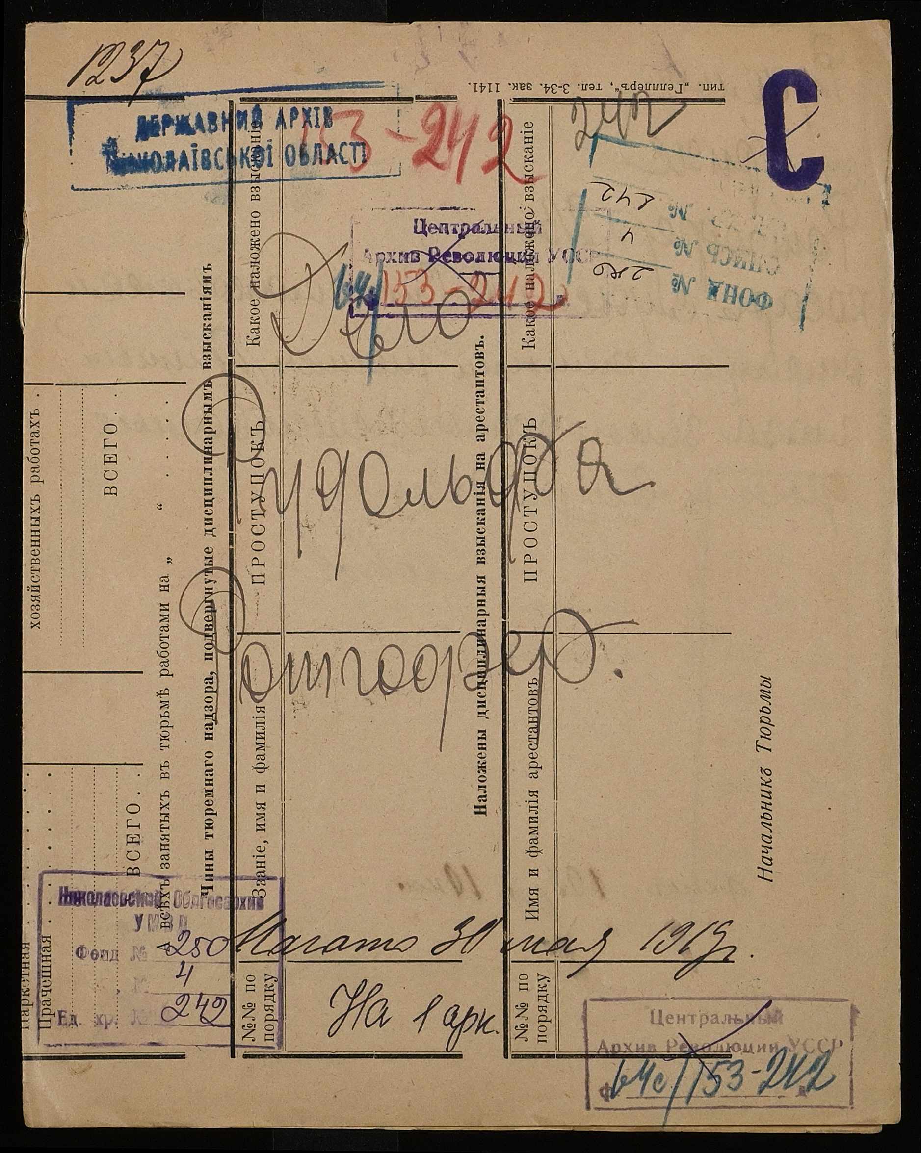 ◦ ◦ Фонд № 250 “Миколаївська каторжна тюрма № 2”