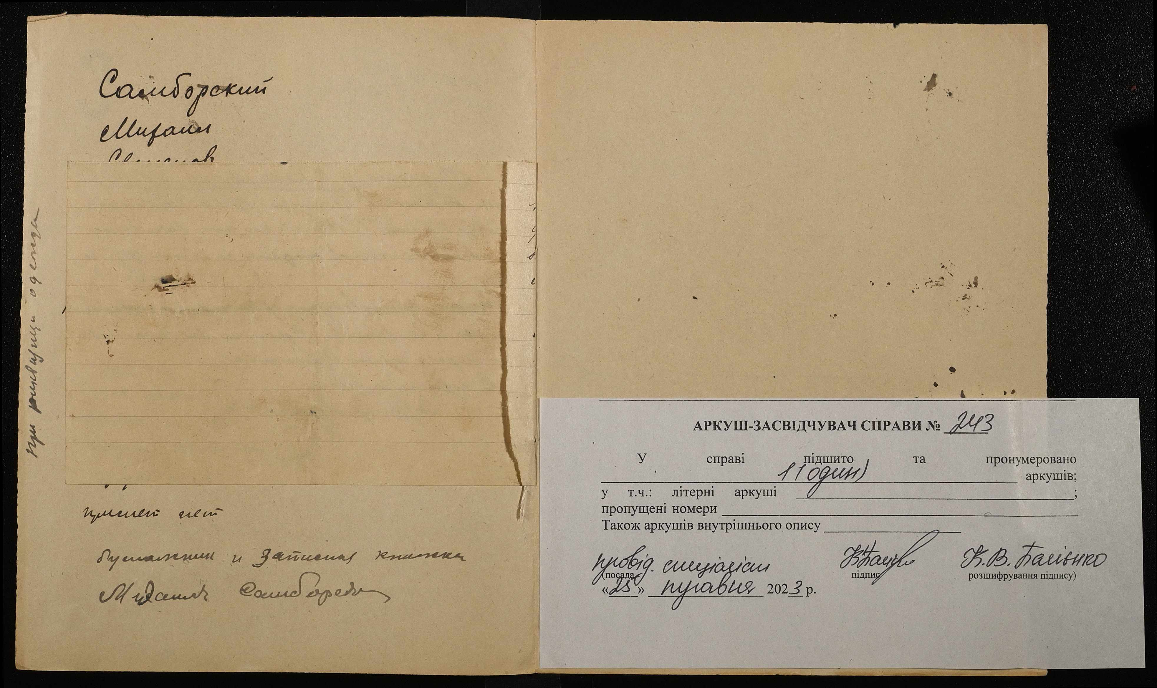 • • • • Справа № 243 “Самборський Михайло Семенович (Самборский Михаил Семенович)”