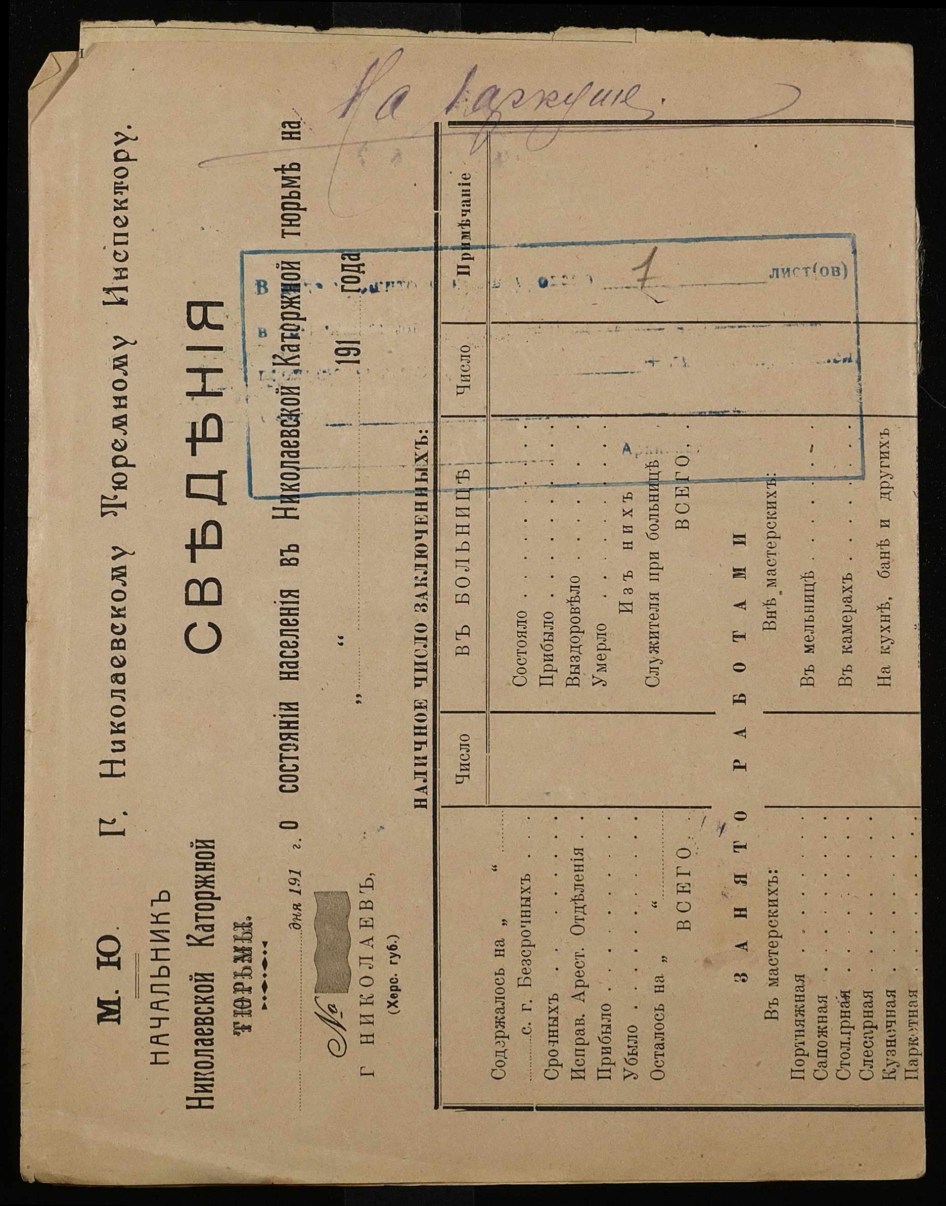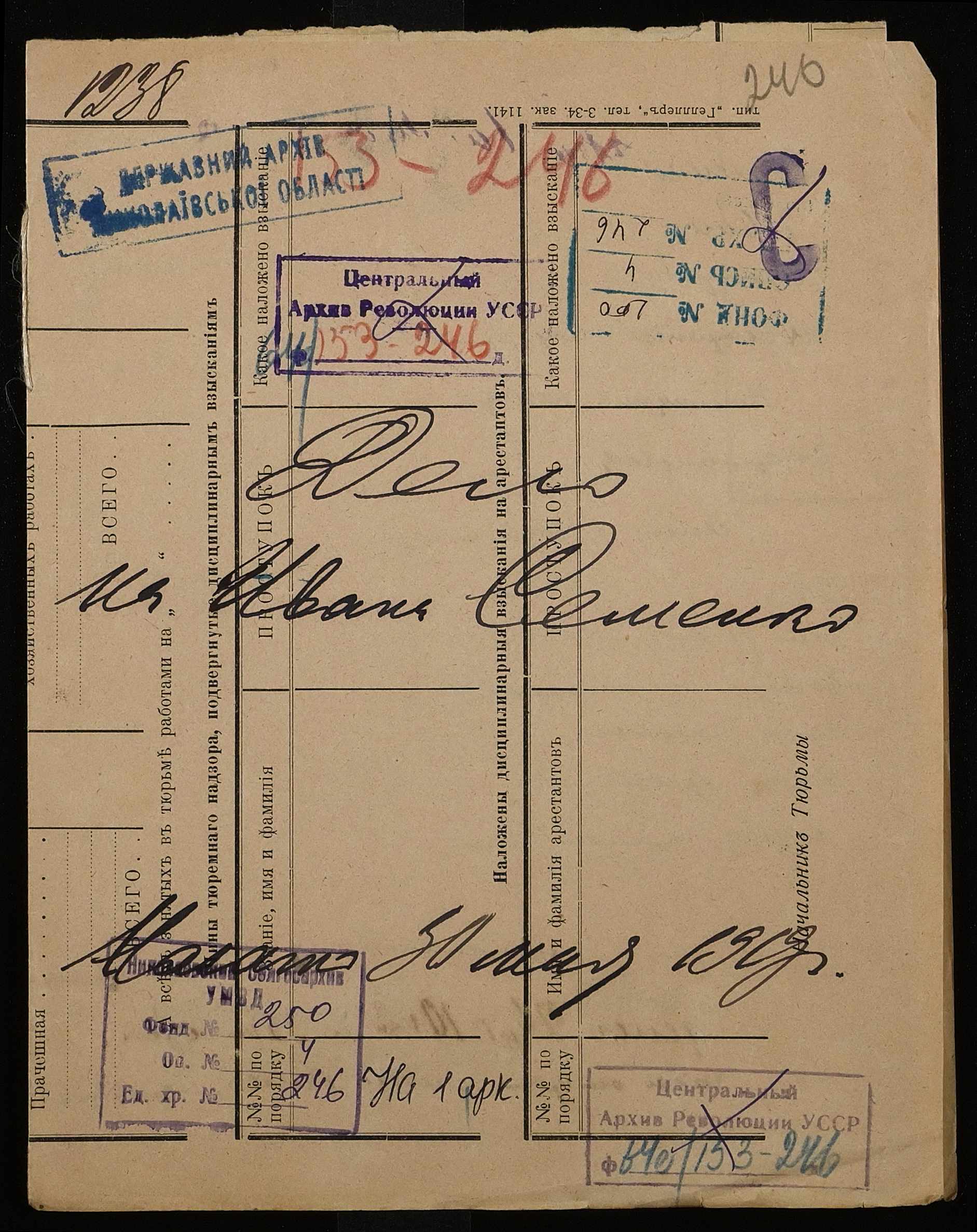 ◦ ◦ Фонд № 250 “Миколаївська каторжна тюрма № 2”