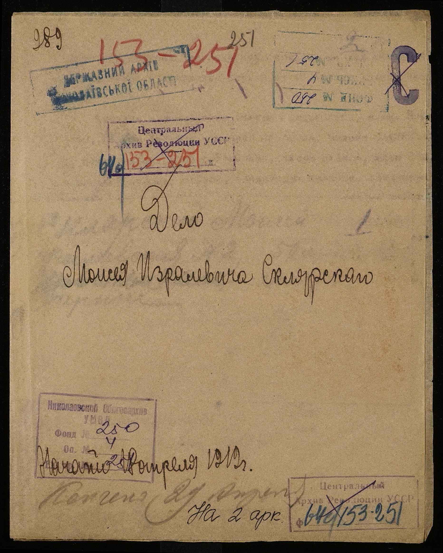 • • • • Справа № 251 “Склярський Мойсей Ізраїлевич (Склярский Моисей Израилевич)”