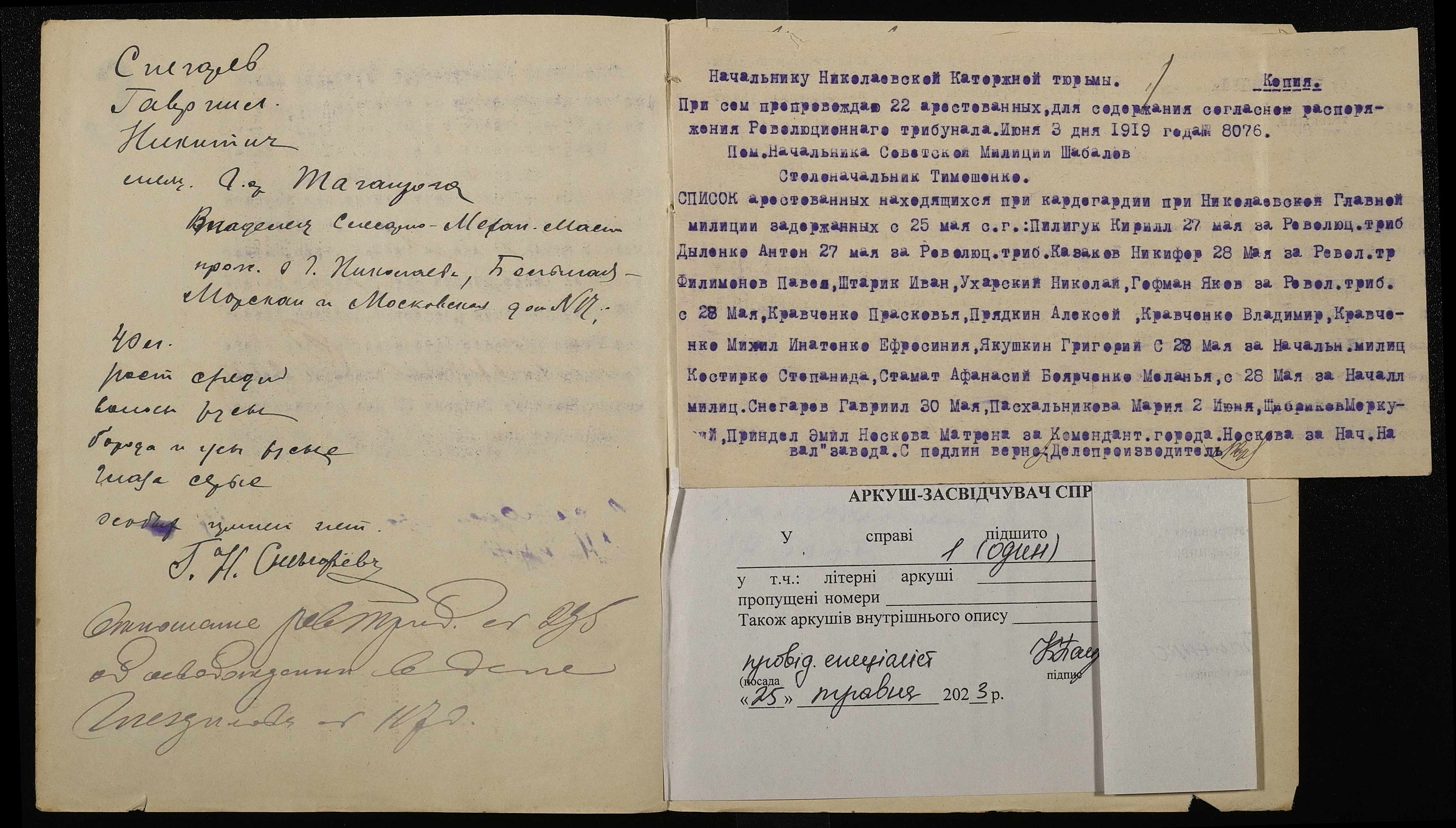 • • • • Справа № 255 “Снєгарьов Гаврило Микитович (Снегарев Гавриил Никитович)”