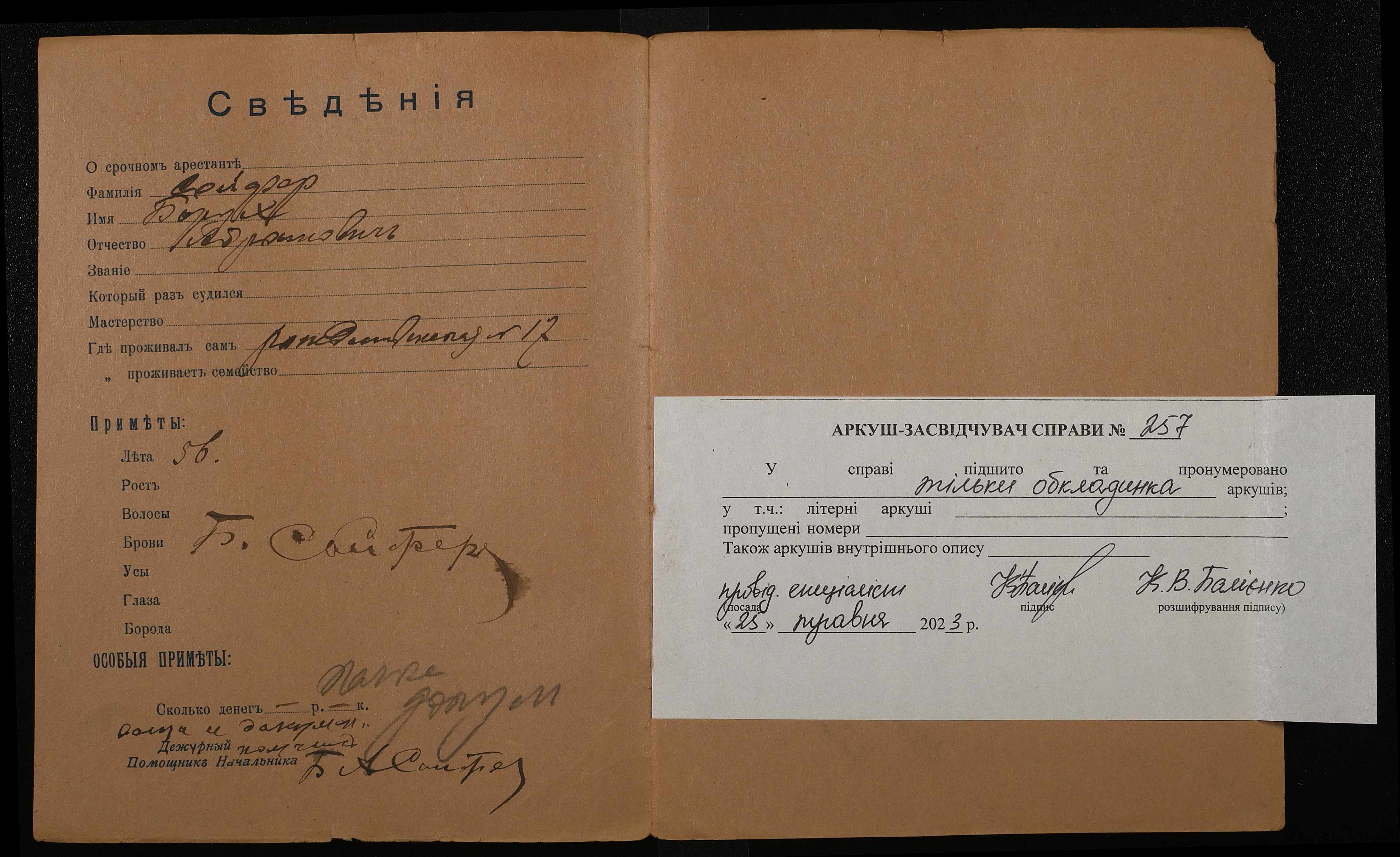 • • • • Справа № 257 “Сойфер Борух Абрамович (Сойфер Борух Абрамович)”