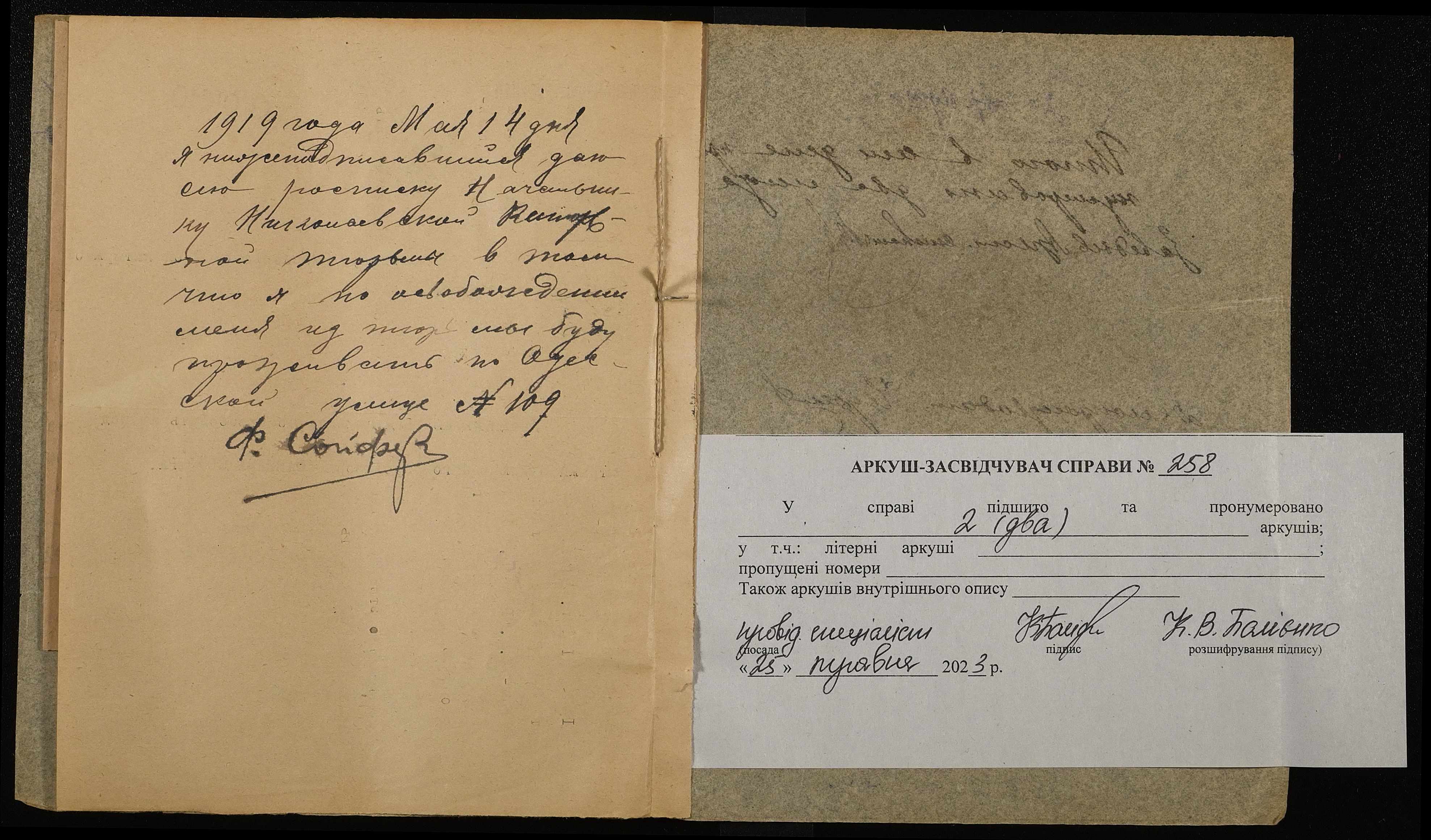 Фонд 250 / Опис 4 / Справа 258