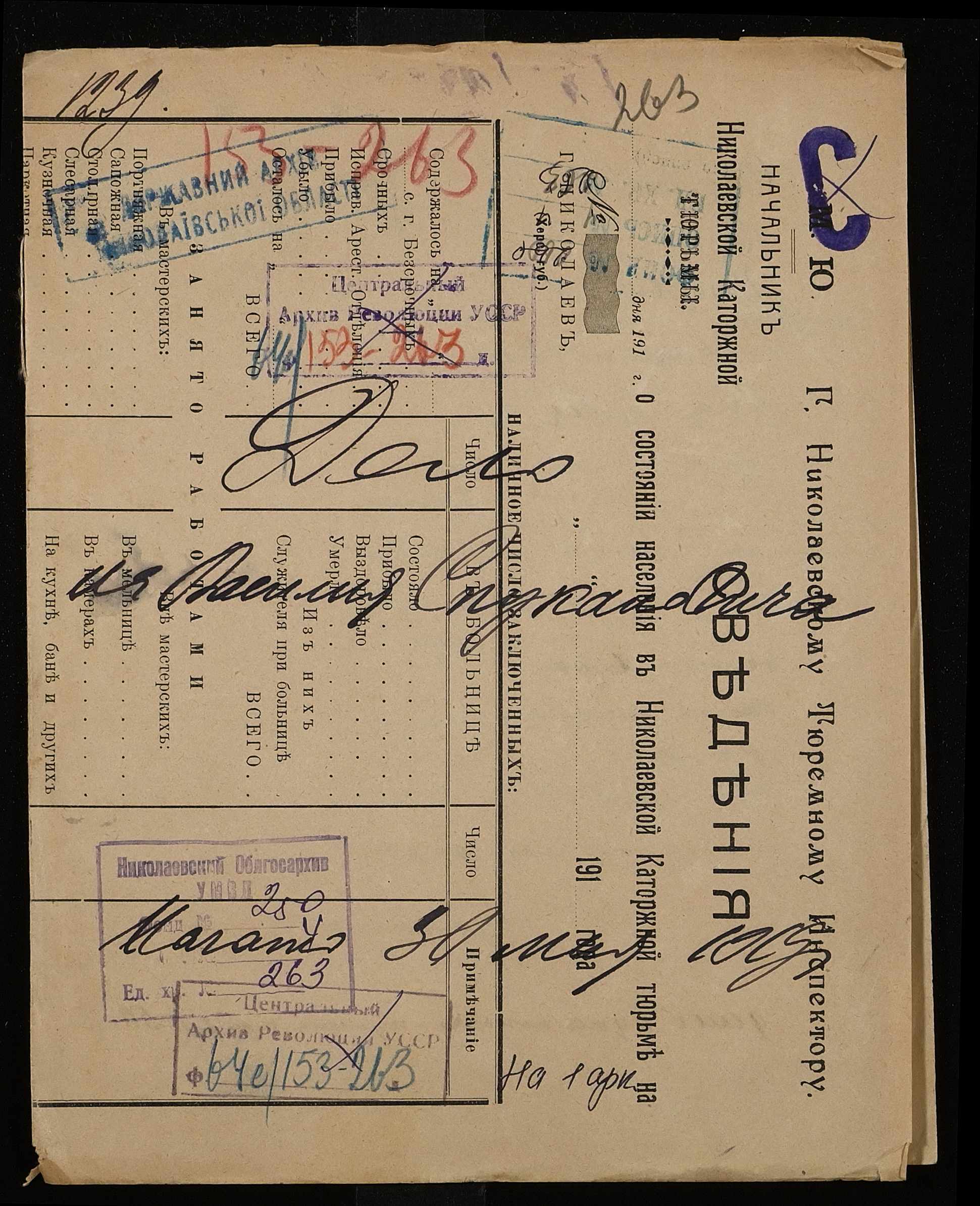 ◦ ◦ Фонд № 250 “Миколаївська каторжна тюрма № 2”