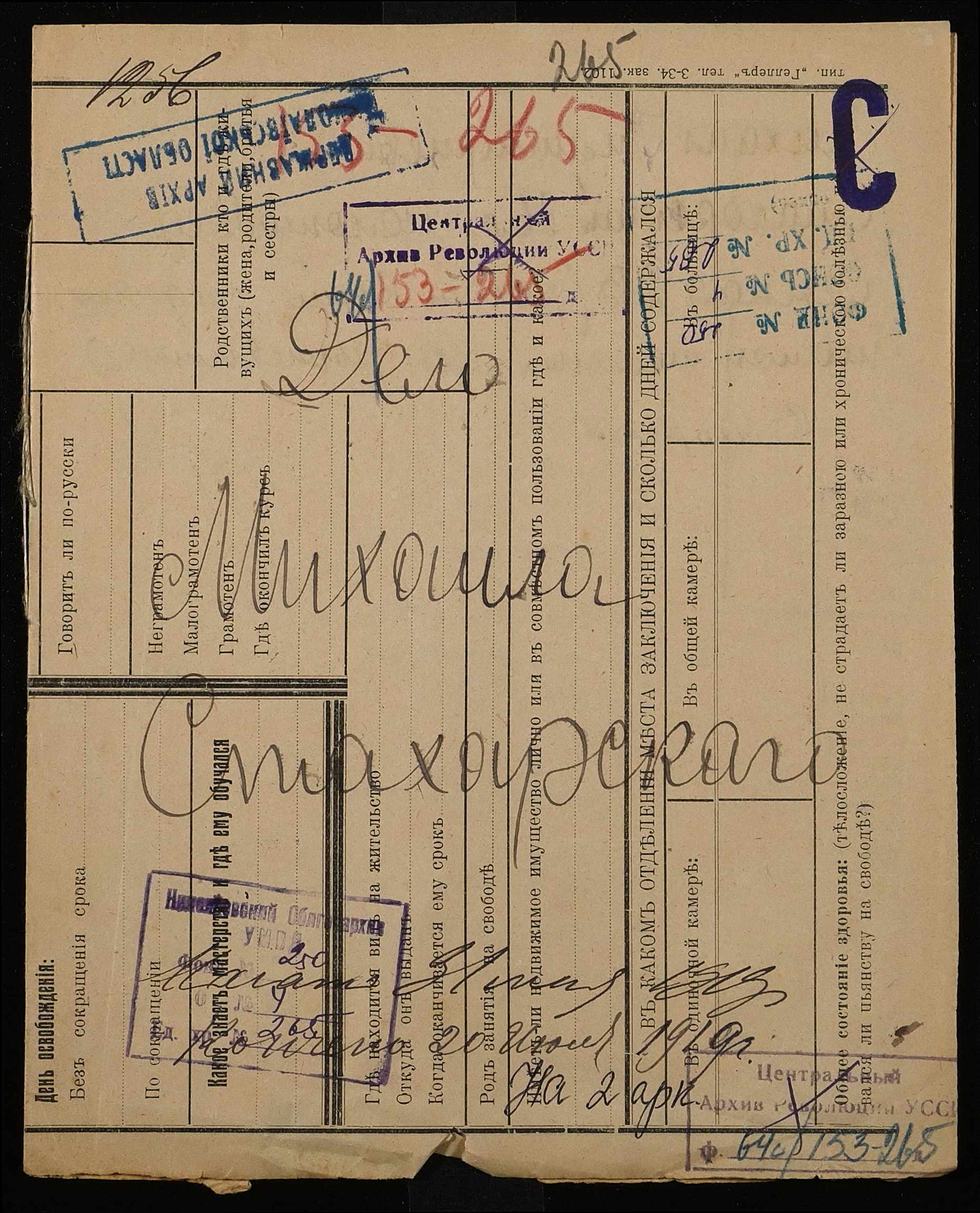 • • • • Справа № 265 “Стахорський Михайло Дмитрович (Стахорский Михаил Дмитриевич)”