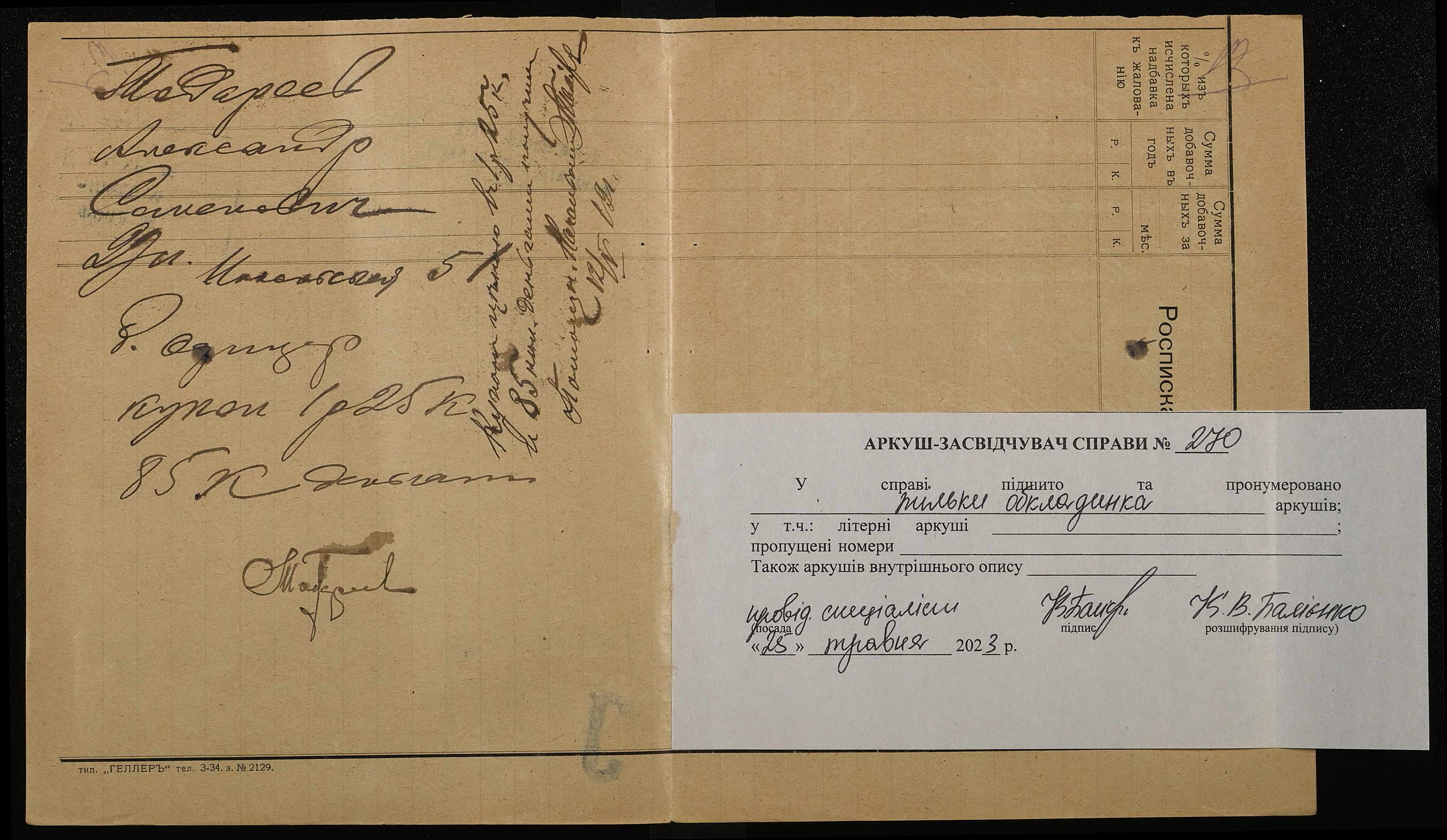 Фонд 250 / Опис 4 / Справа 270