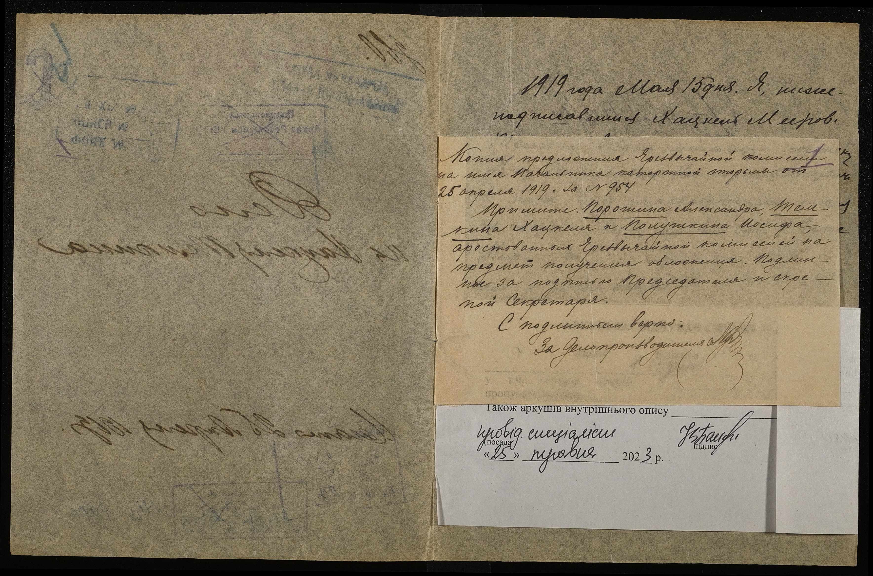 ◦ ◦ ◦ Опис № 4 справ постійного зберігання за 1916, 1918, 1919 роки