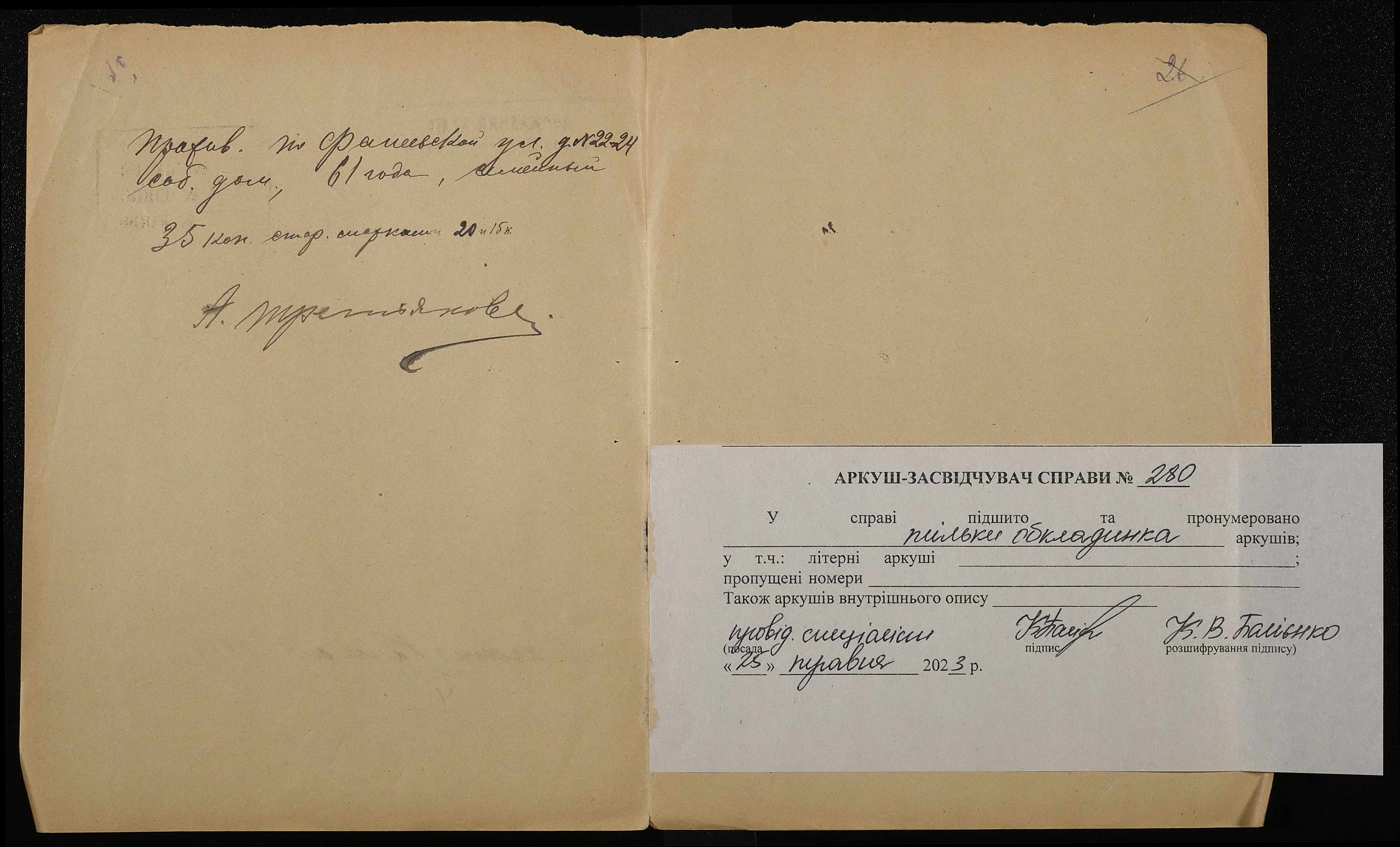 • • • • Справа № 280 “Третьяков Олександр Омелянович (Третяков Александр Емельянович)”